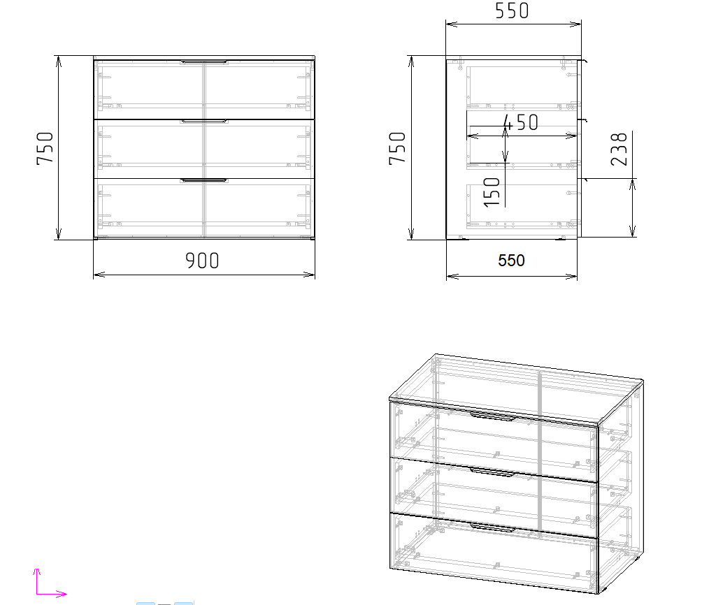 Габариты комода: ширина 900 х высота 750 х глубина 550 мм