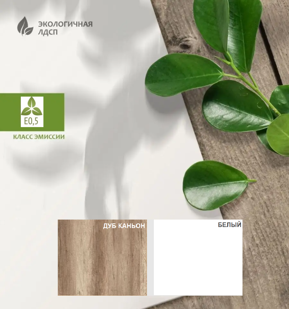 ЛДСП Е0,5. Толщина 16 мм. Цвет дуб каньон + белый