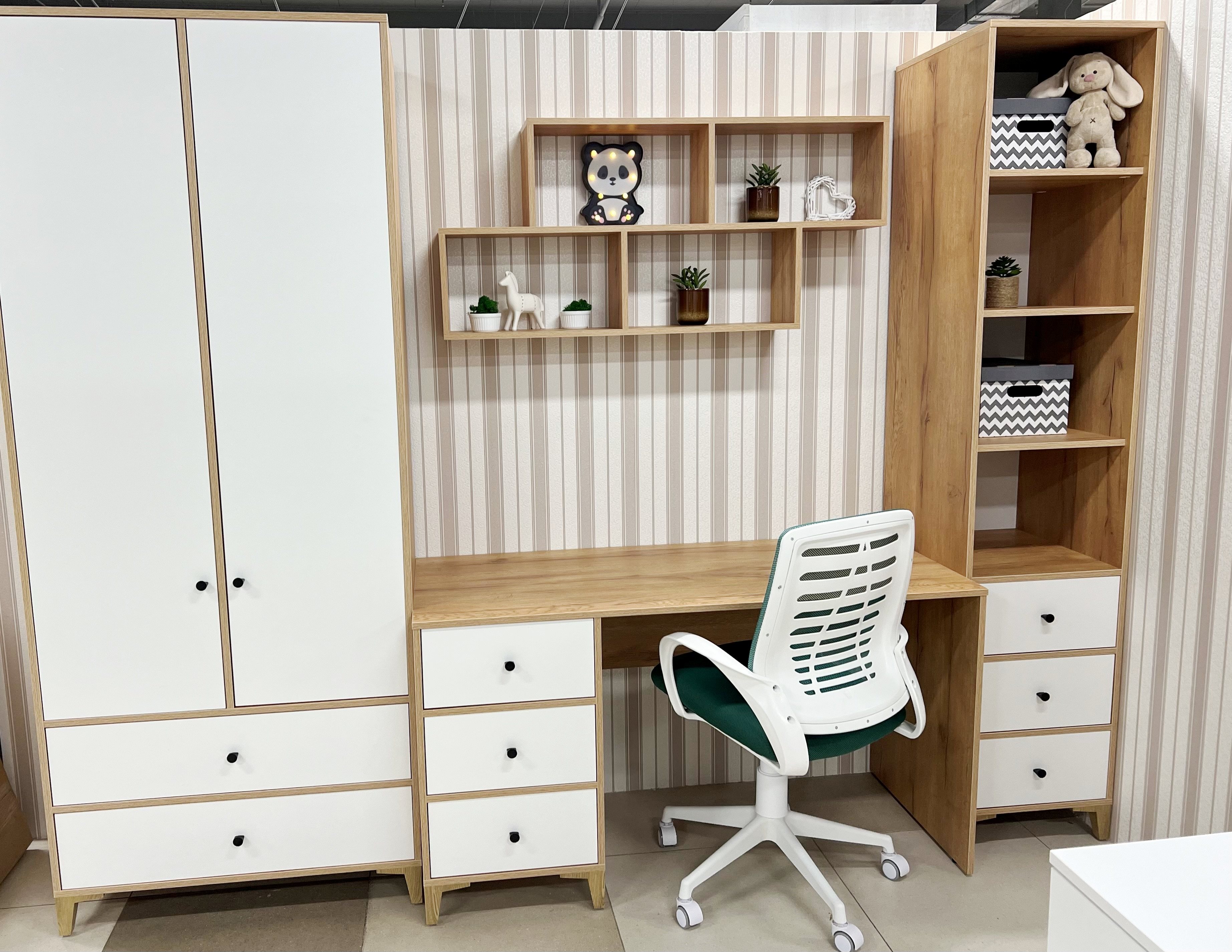 Мебель выполнена из сертифицированного, качественного, экологически чистого ЛДСП класса Е0,5 в сочетании цветов дуб золотистый с белым.