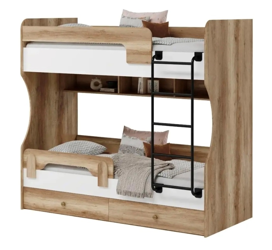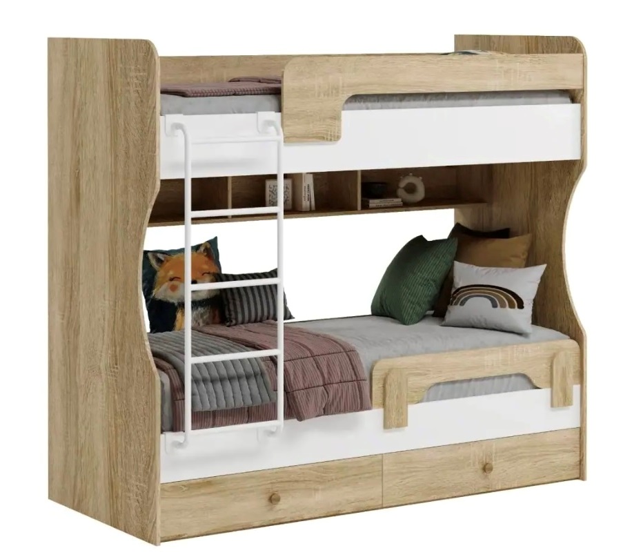 Кровать 2-х ярусная Омега (дуб сонома + белый) 190х80
