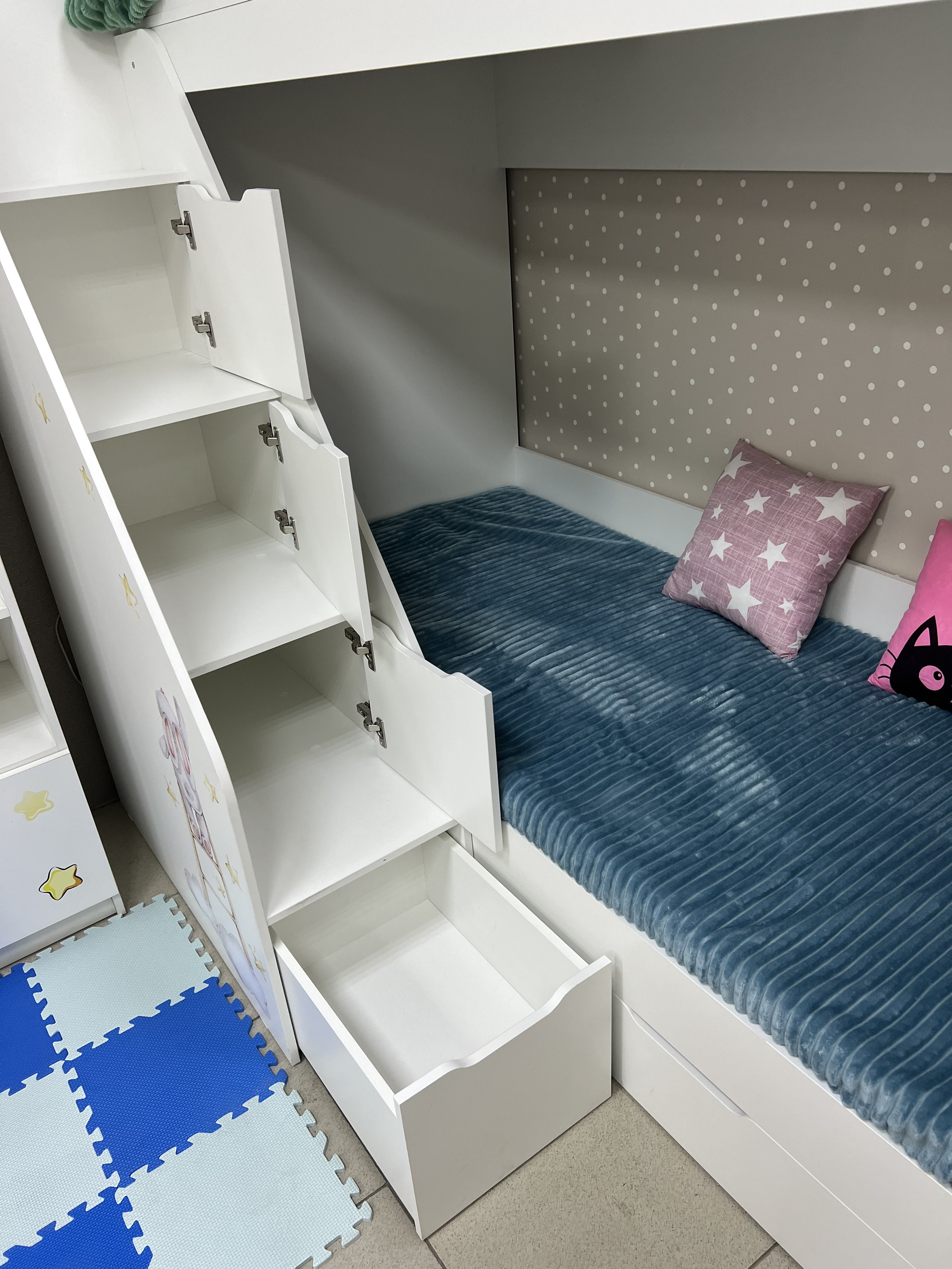 Высокая нагрузка на спальные места. Удобная лестница с ящиками
