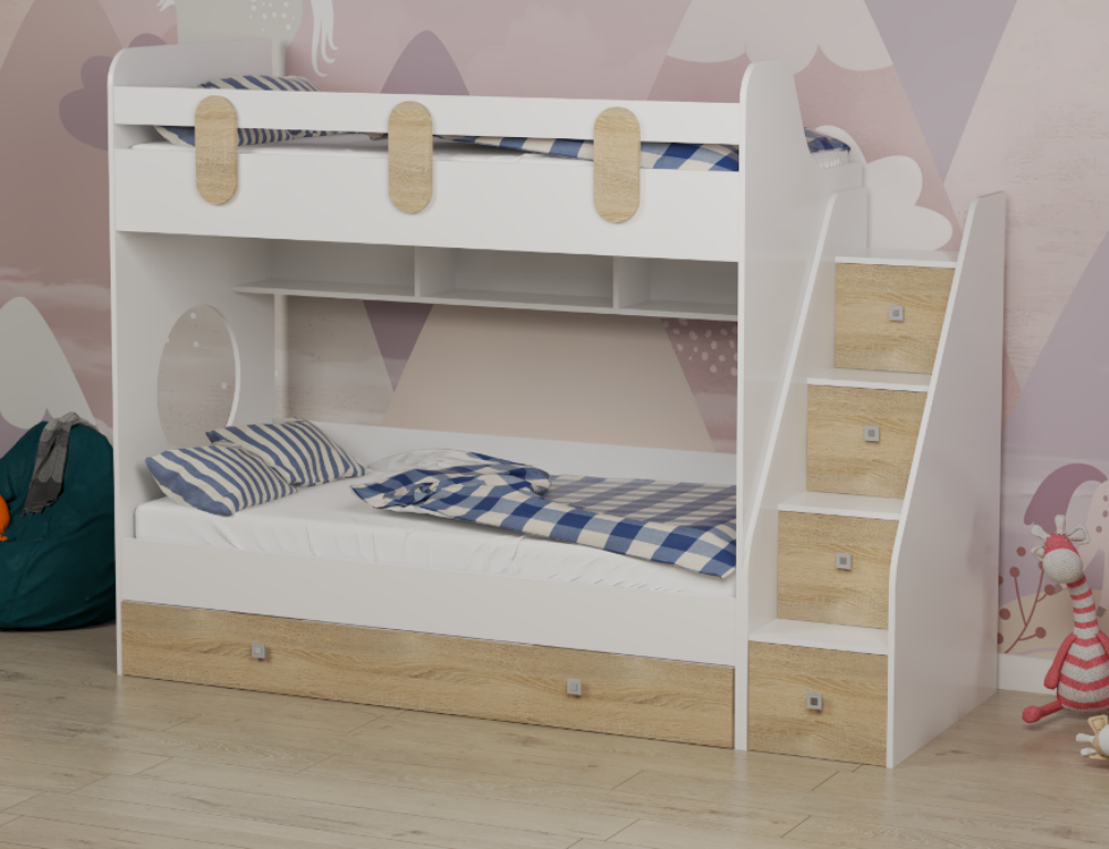 Прочная, стильная кровать Фортуна-3 с удобной, безопасной лестницей и комфортной высотой.