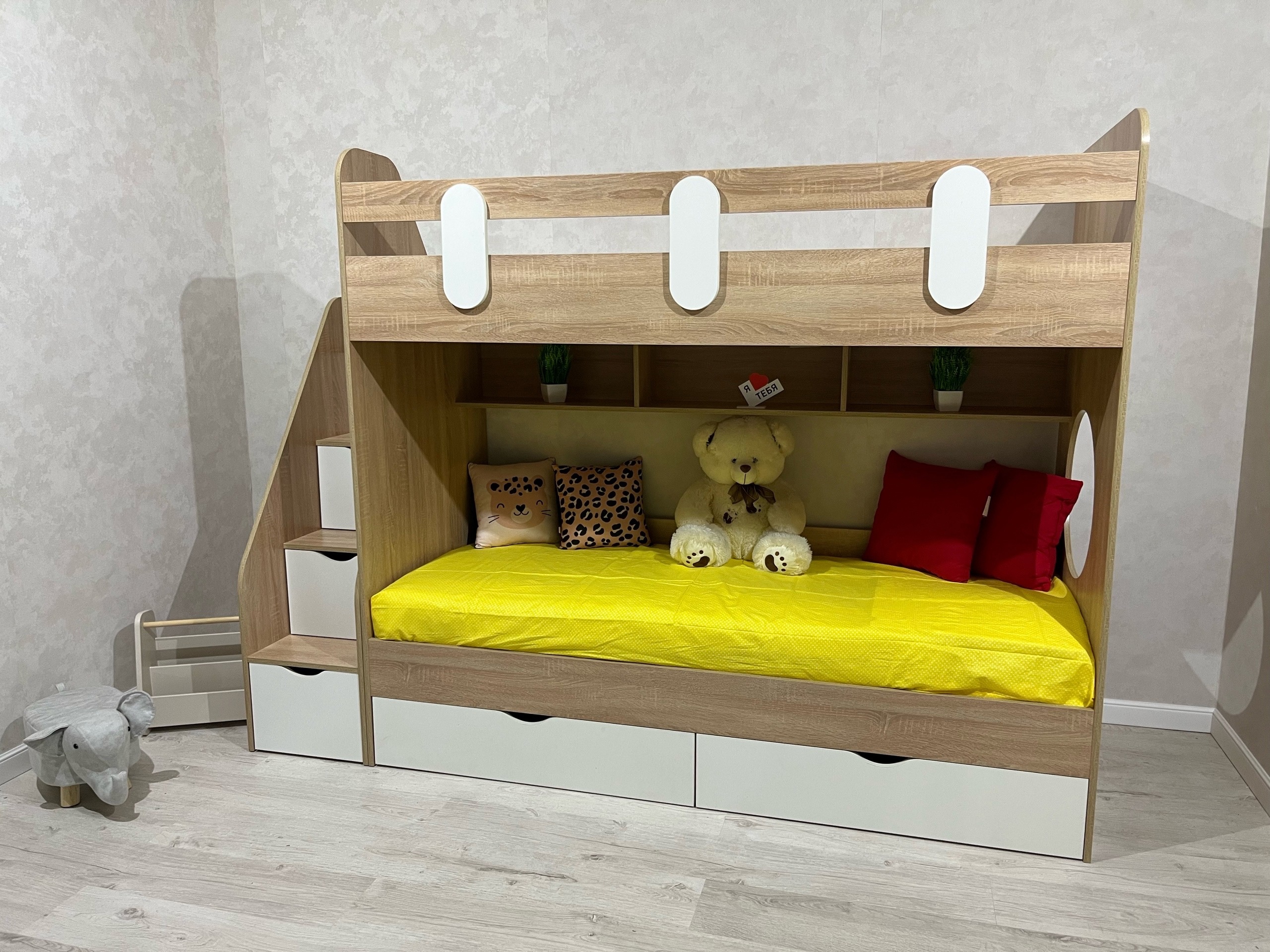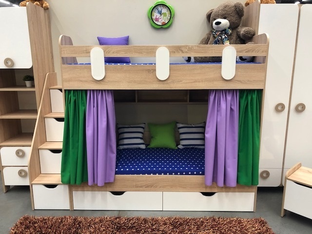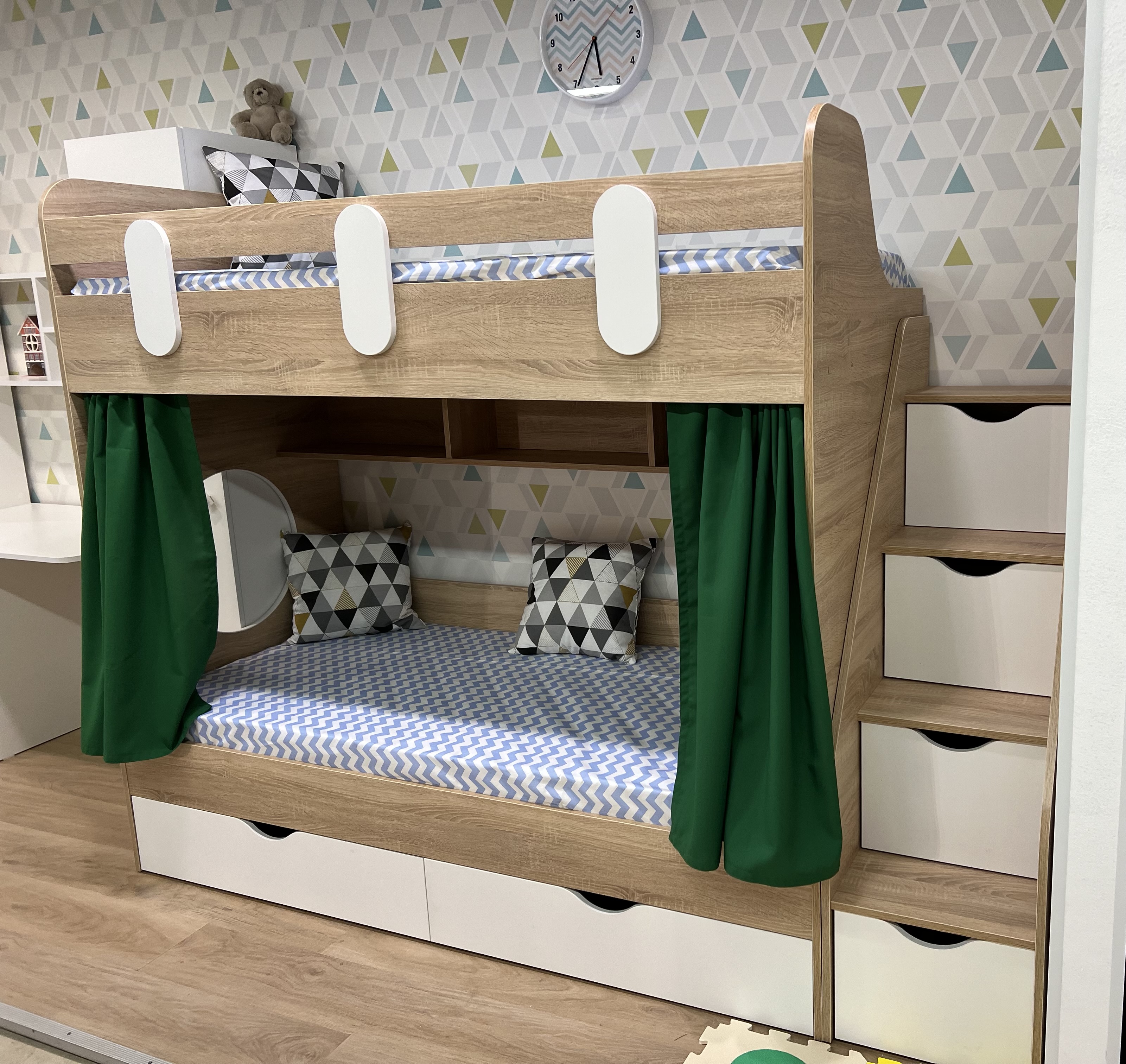 * Выдвижные ящики в нижней кровати изготовлены с применением метабоксов, что делает изделие практичным и надежным.