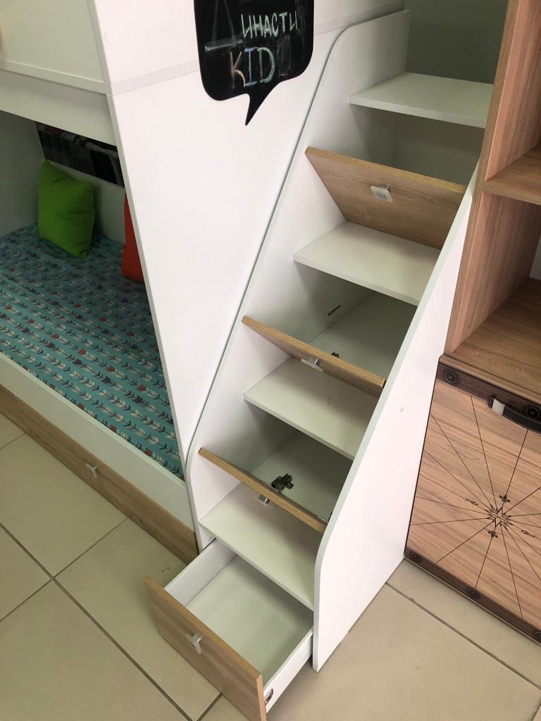 Два выдвижных ящика нижней кровати с крепким дном из ЛДСП (не ДВП, не ХДФ!), ящики выдерживают нагрузку до 45 кг каждый.