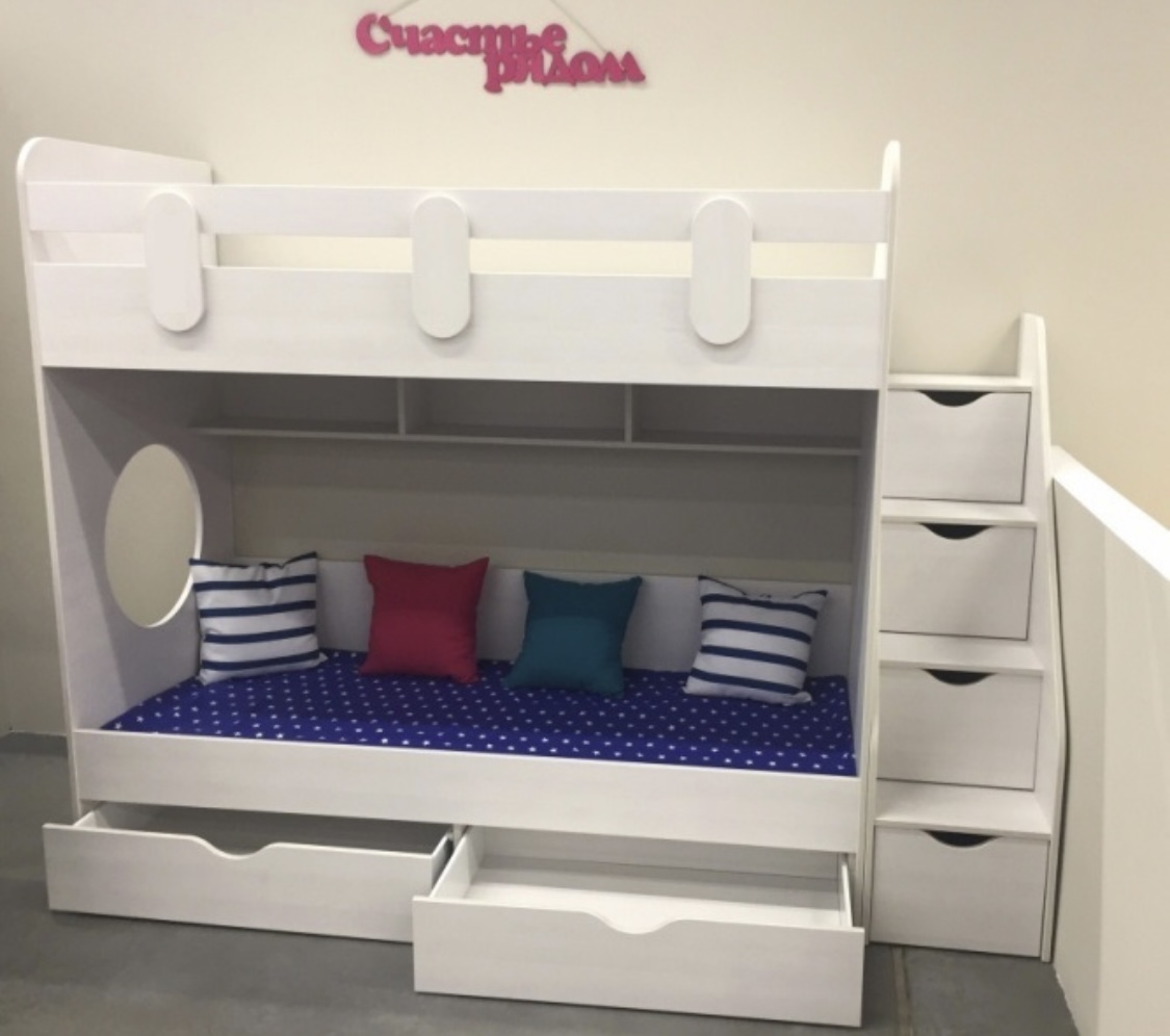 Основание кровати – прочный настил ЛДСП (НЕ РЕЙКИ!), который позволяет ребенку спать на ровной поверхности, что важно для детской спины.