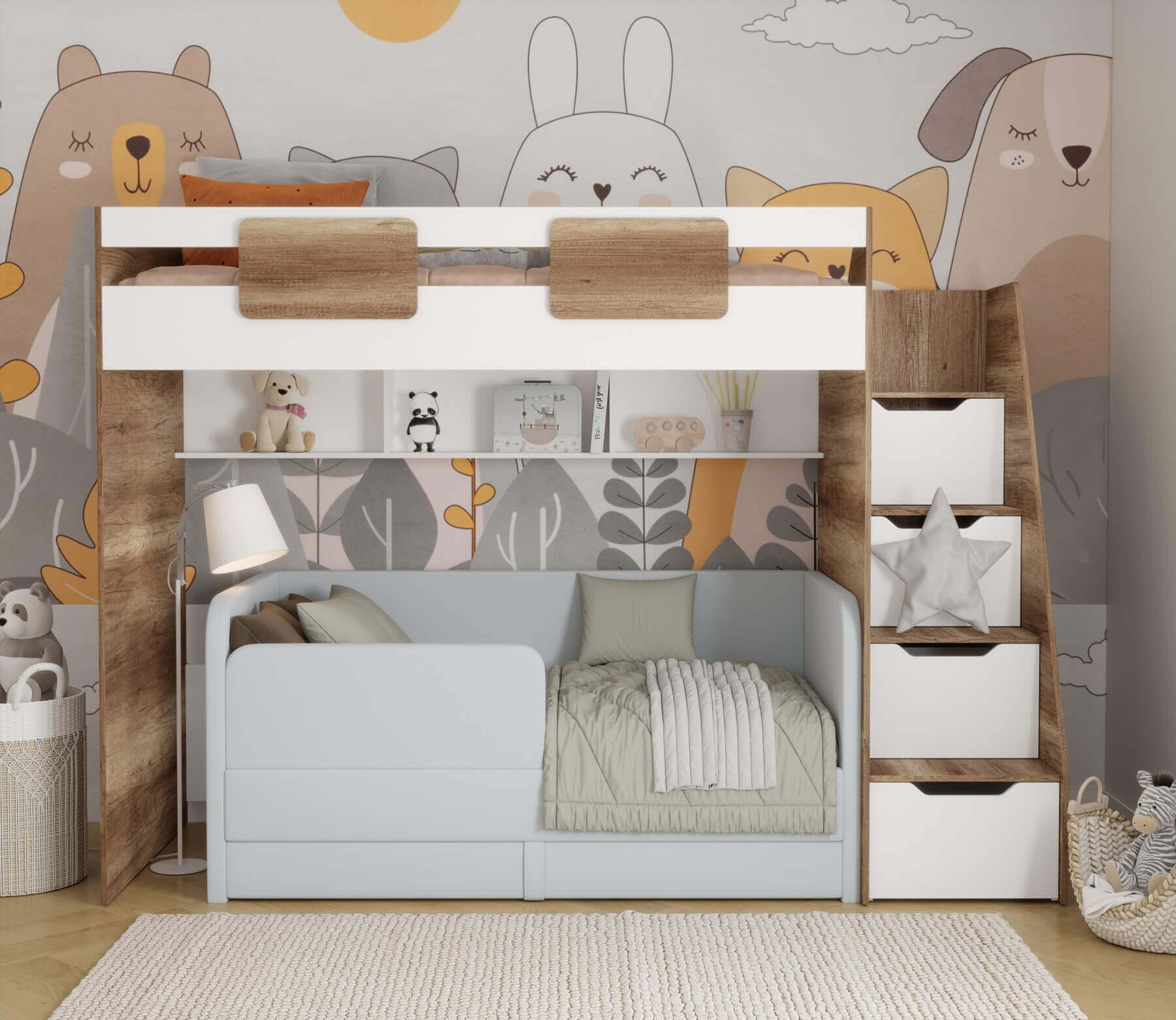 кровать-чердак Лайт Лофт + мягкая кровать Непос