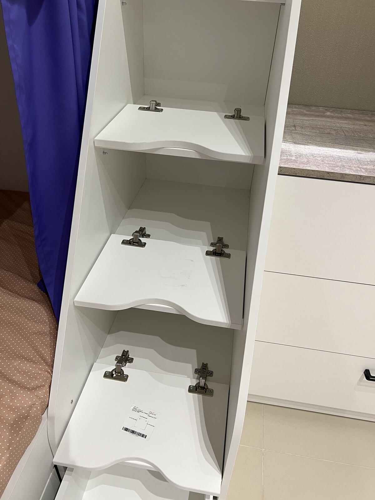 Три ящика в лестнице на откидных петлях.