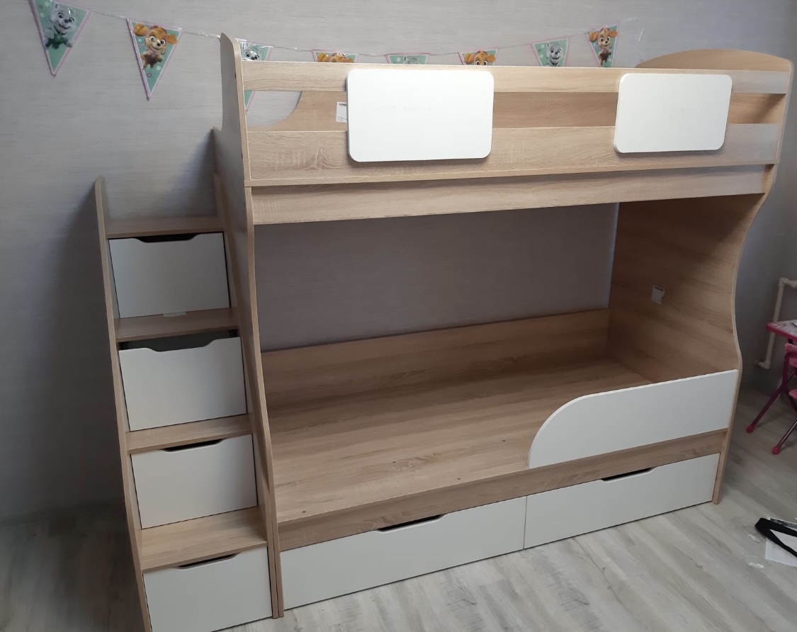 Основание кровати – прочный настил ЛДСП, который позволяет ребенку спать на ровной поверхности, что важно для детской спины. Прочное основание не скрипит и не сломается при играх. Отлично подходит как для пружинных, так и беспружинных матрасов.
