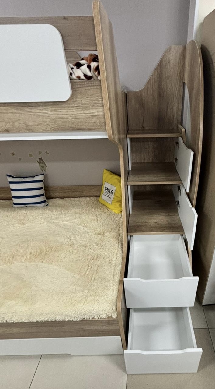 Корпус выполнен из ЛДСП 22 мм. Высокая нагрузка на спальные места. Доводчики. Высокий, безопасный борт. Прочные ящики!
