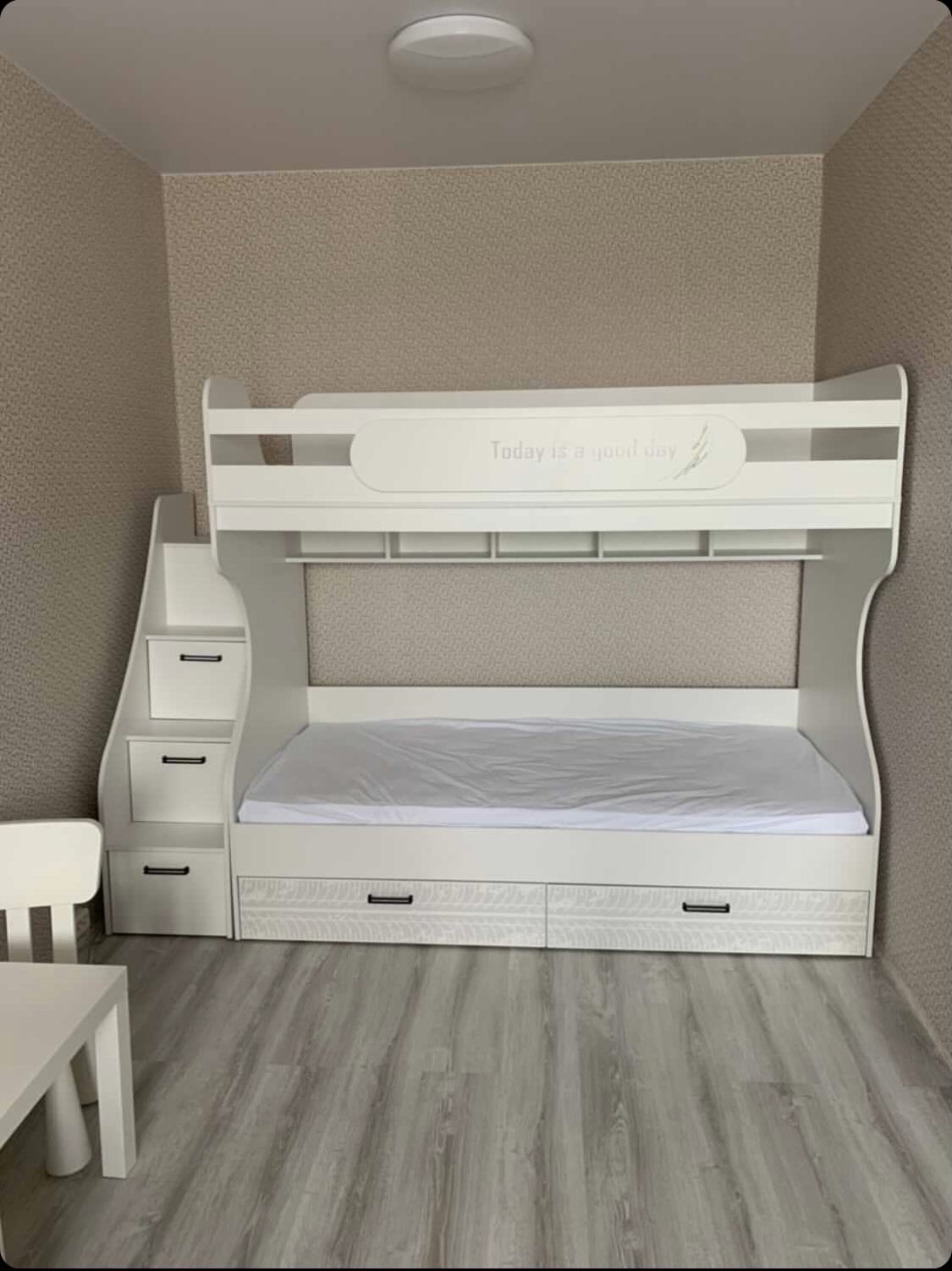 * Основание кровати – надежный настил ЛДСП (НЕ РЕЙКИ!), который позволяет ребенку спать на ровной поверхности, что важно для детской спины.