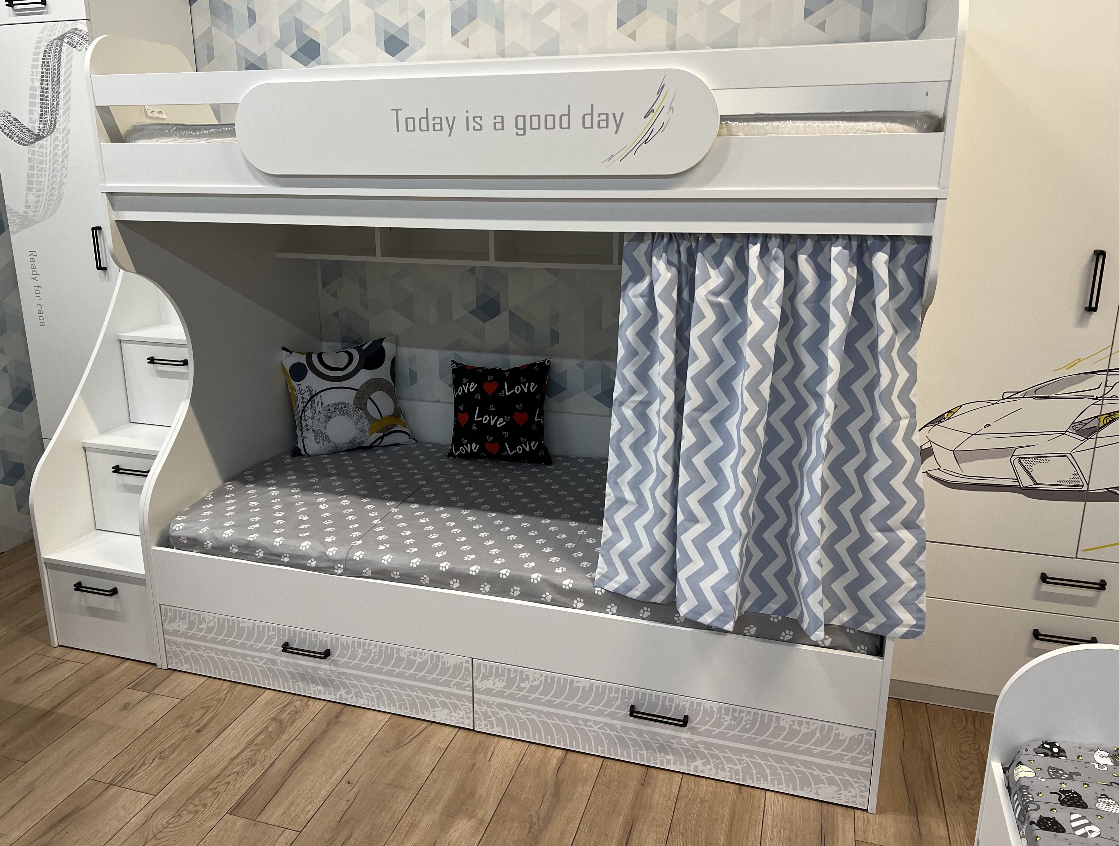 * Дополнительно к нижней кровати можно приобрести съемный бортик ограничитель.