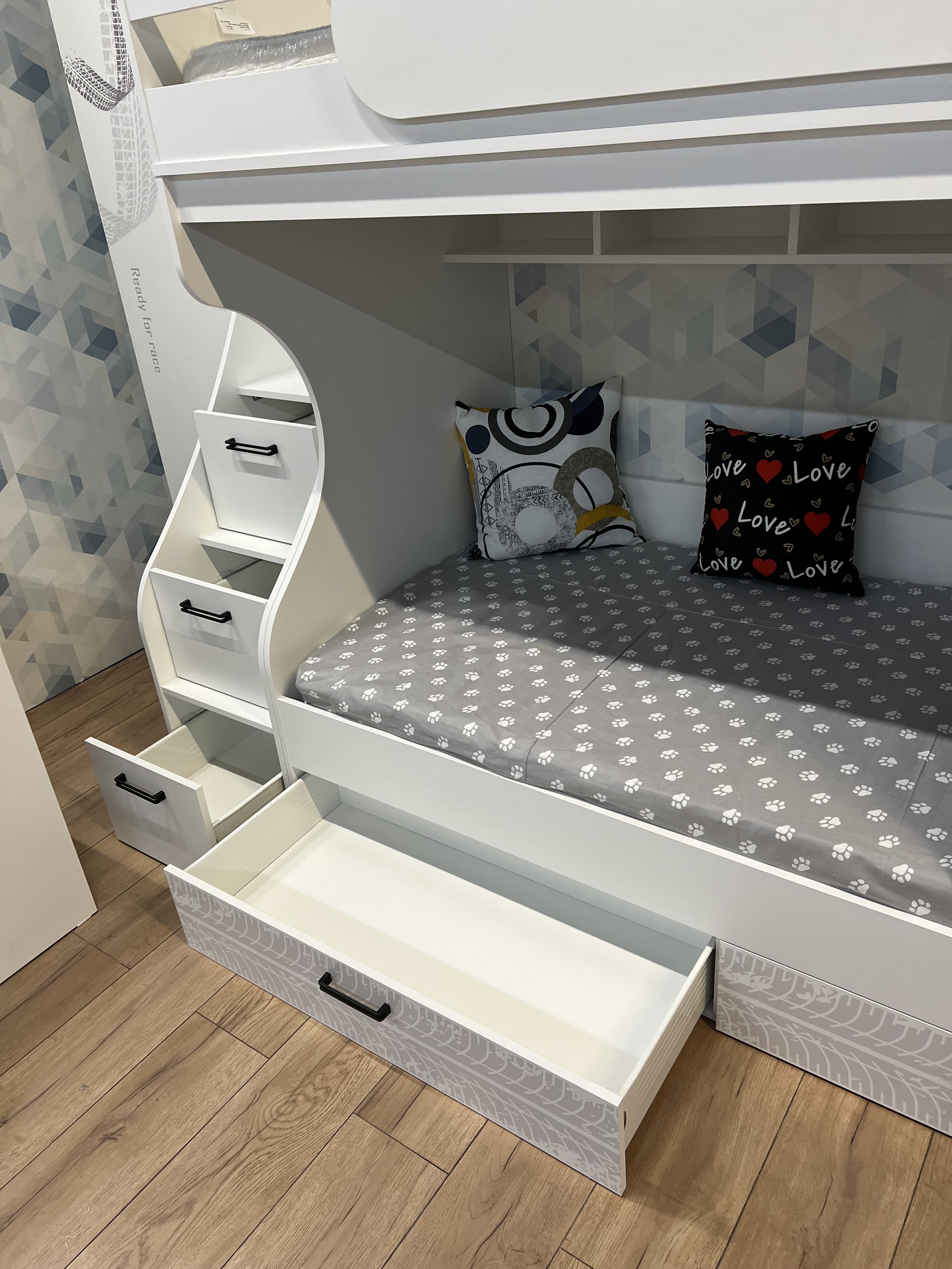 * Выдвижные ящики в нижней кровати на направляющих скрытого монтажа С ДОВОДЧИКАМИ