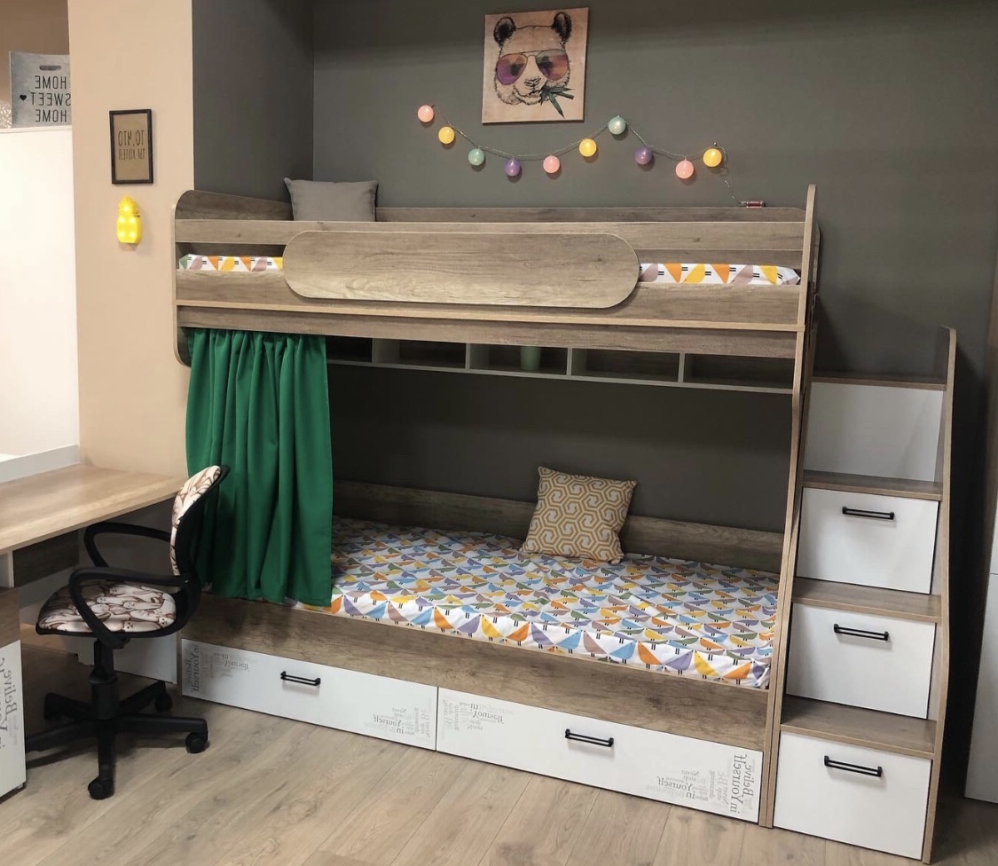 Высота кровати разработана с учетом того, чтобы на втором ярусе ребенку было не душно спать.