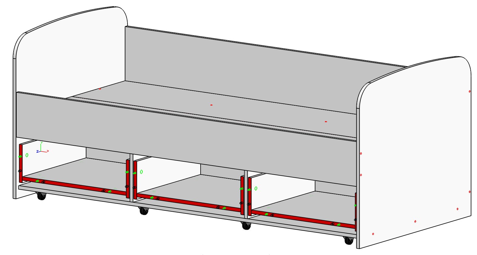 * Нижняя кровать выдвигается полностью благодаря колесным опорам.