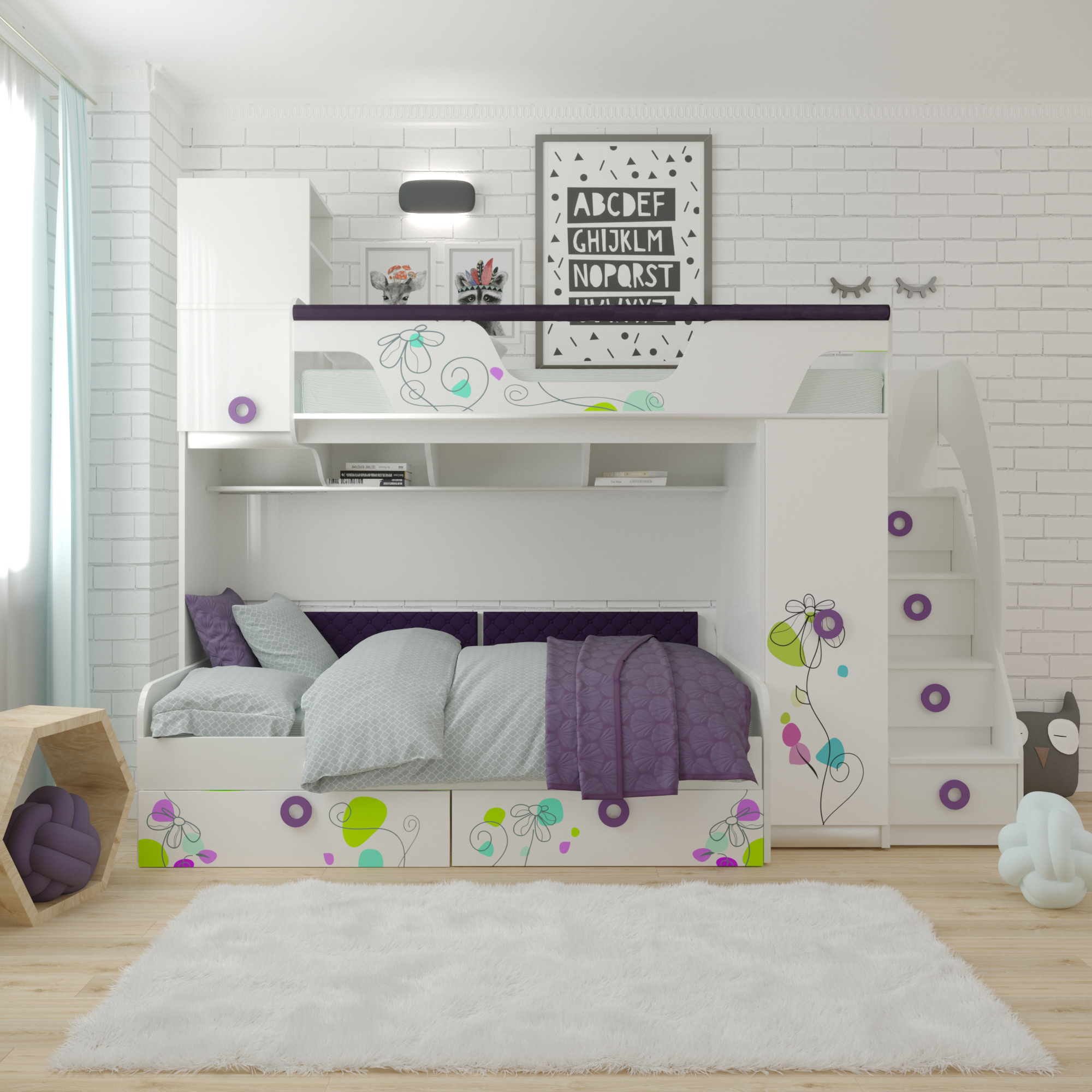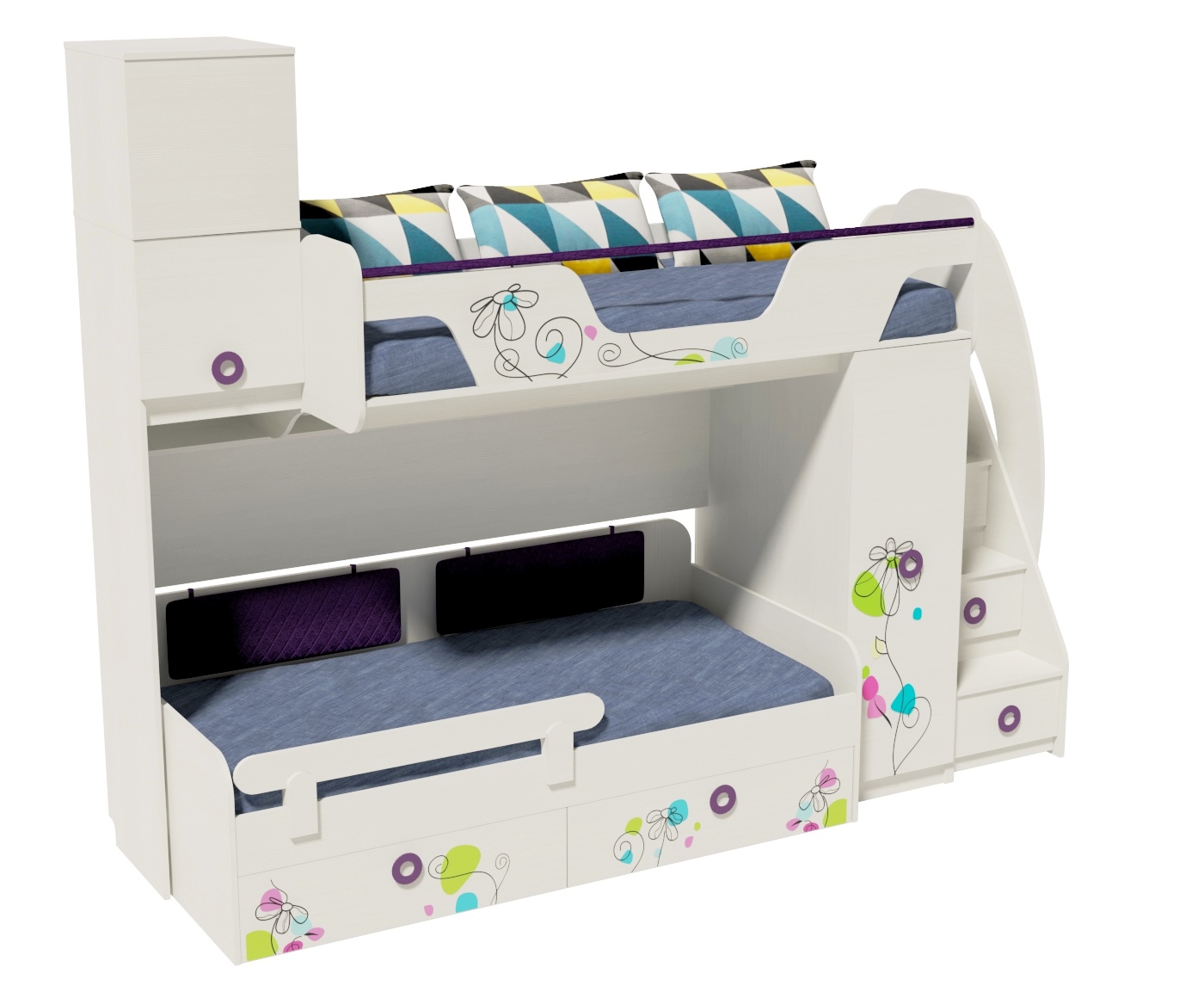 Кровать 2-х ярусная коллекции мебели Цветы (кровать Цветы-6 + кровать Цветы-4)