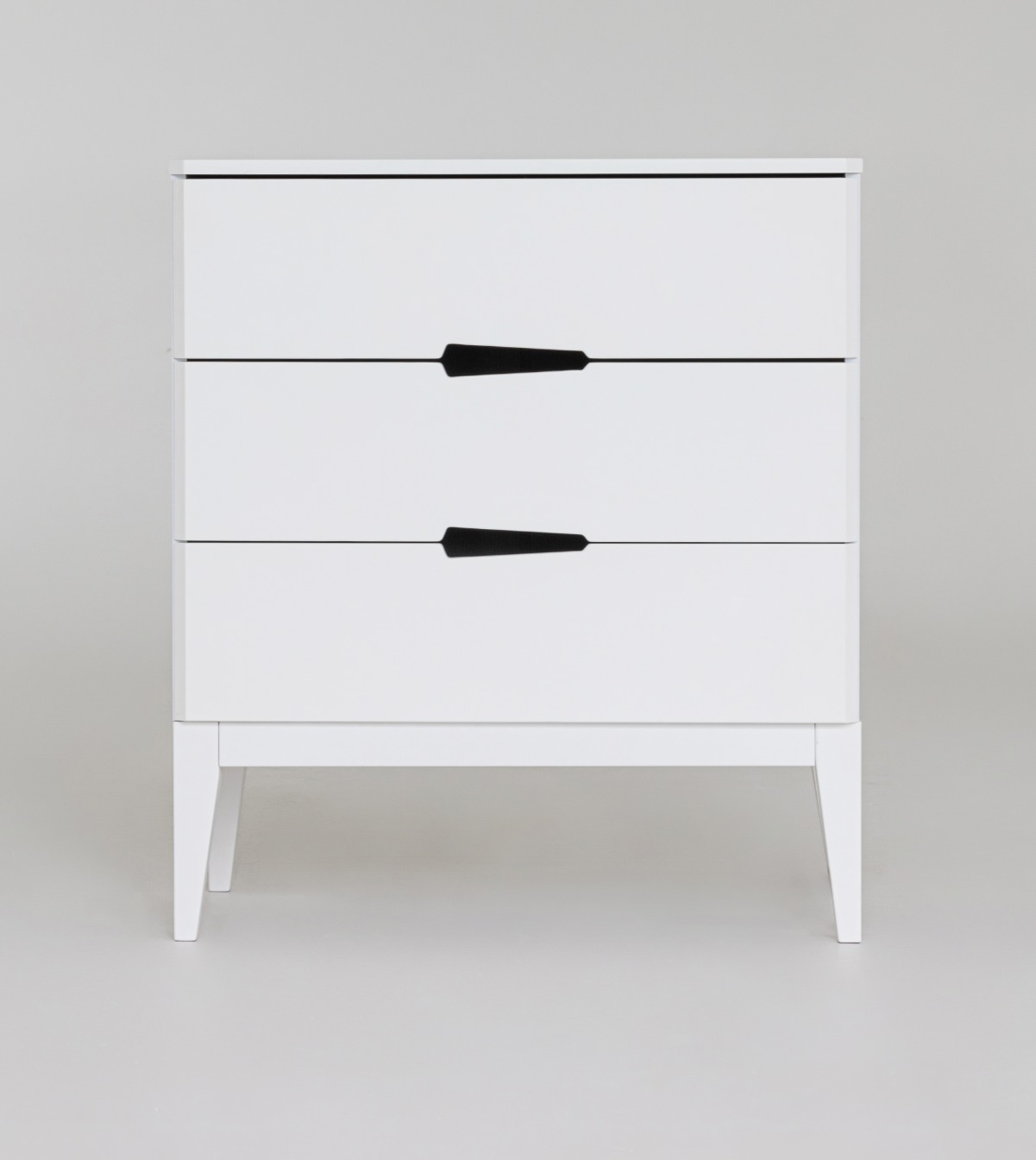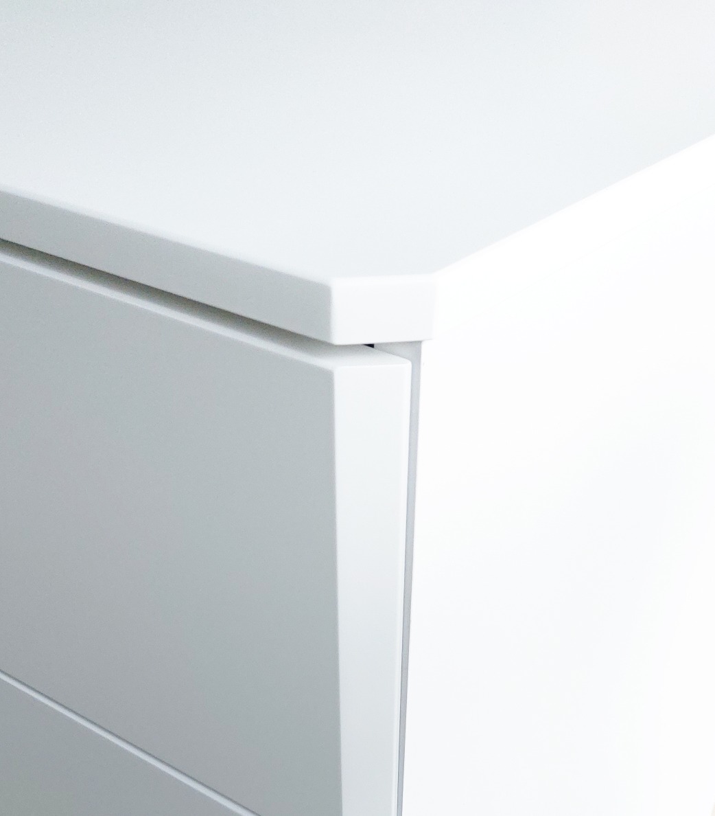 Комод имеет три функциональных ящика на шариковых направляющих полного выдвижения (без доводчиков).