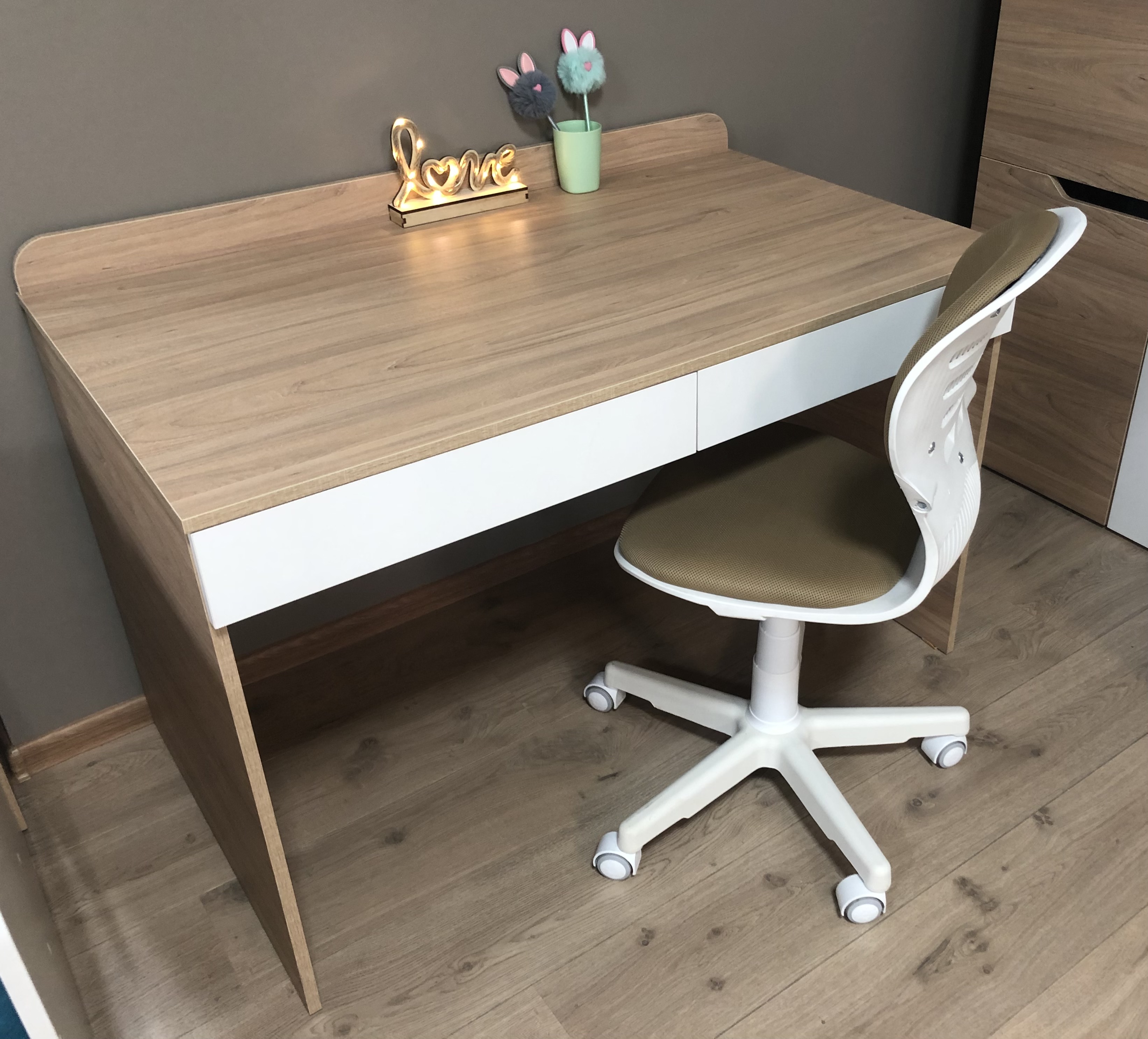В стол встроены два выдвижных ящика
