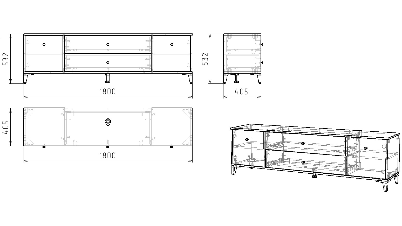 Габариты тумбы: ширина 1800, глубина 405, высота 532 мм