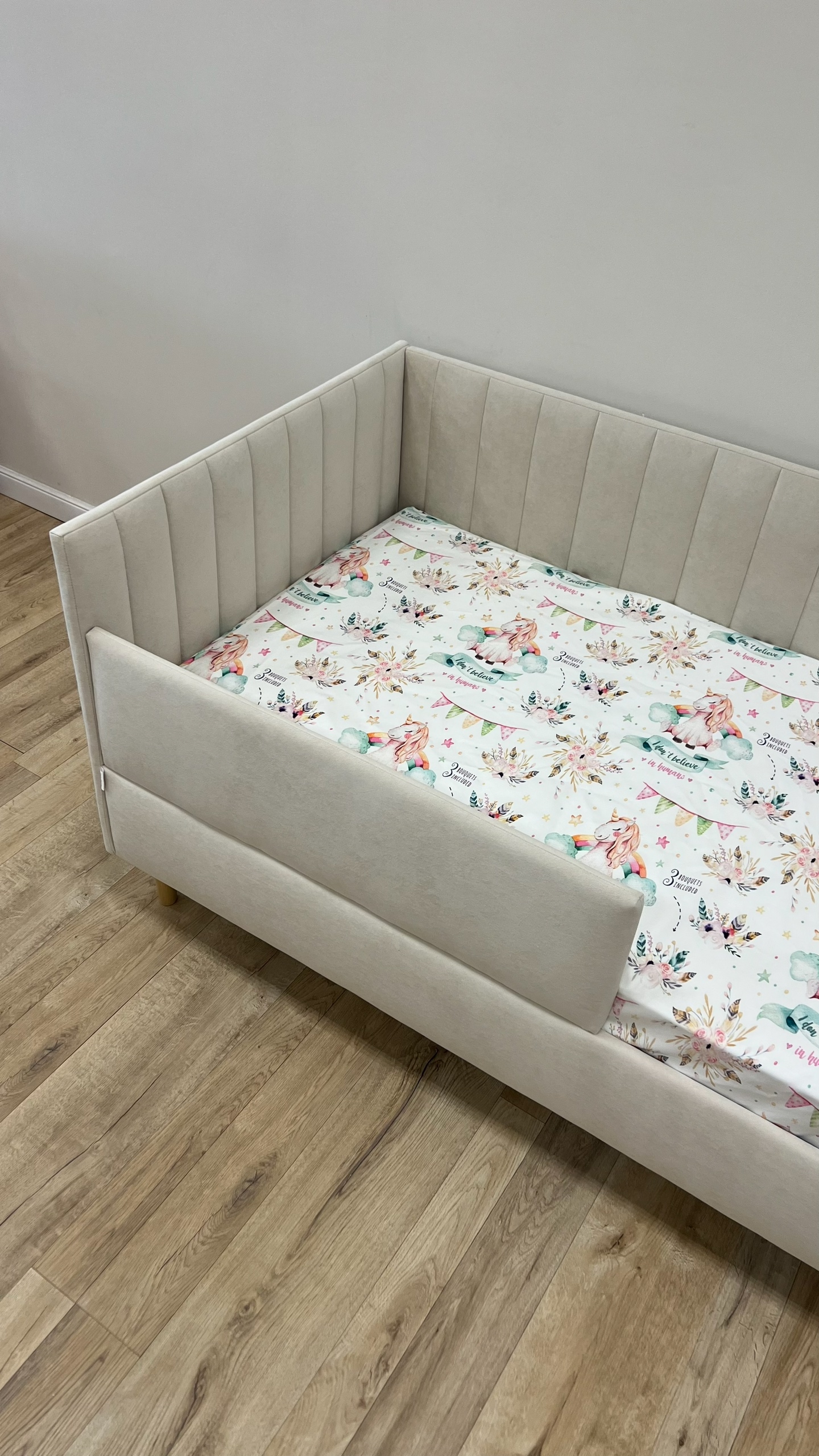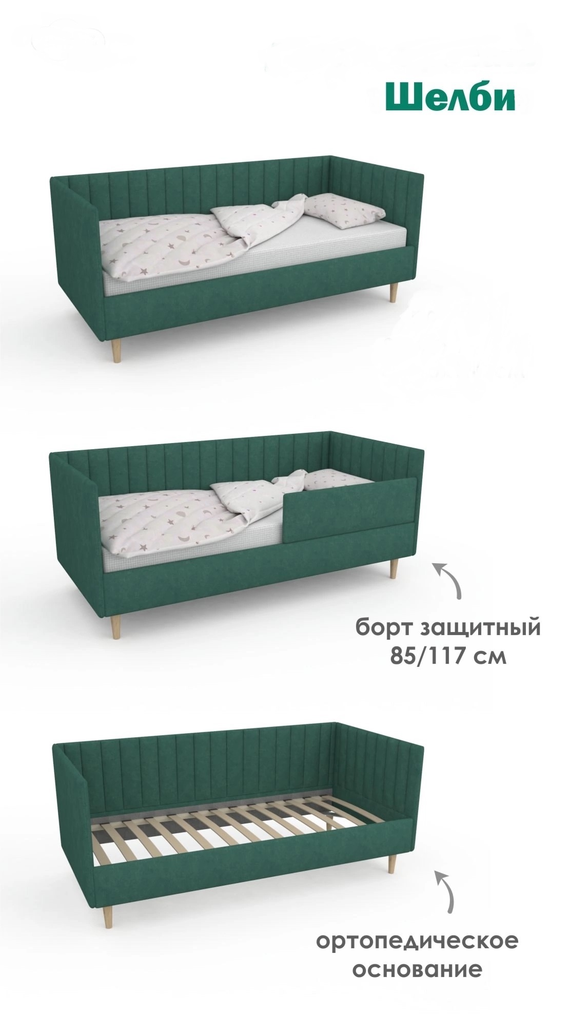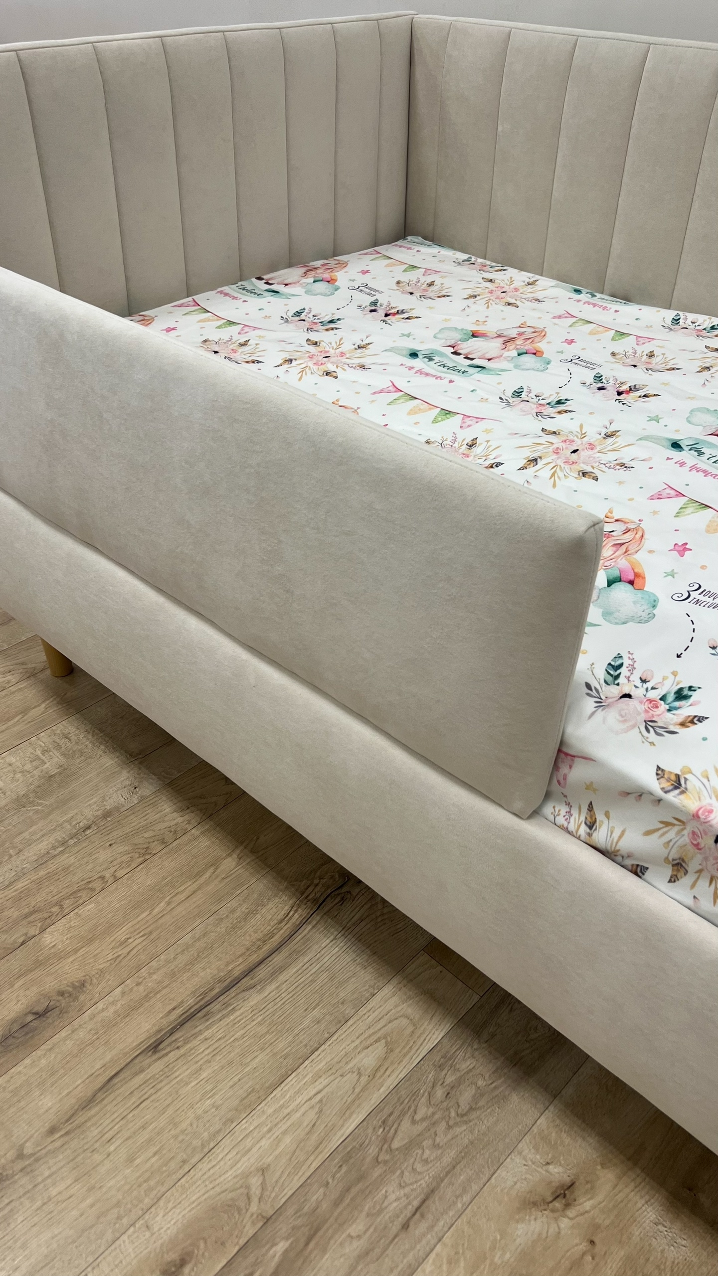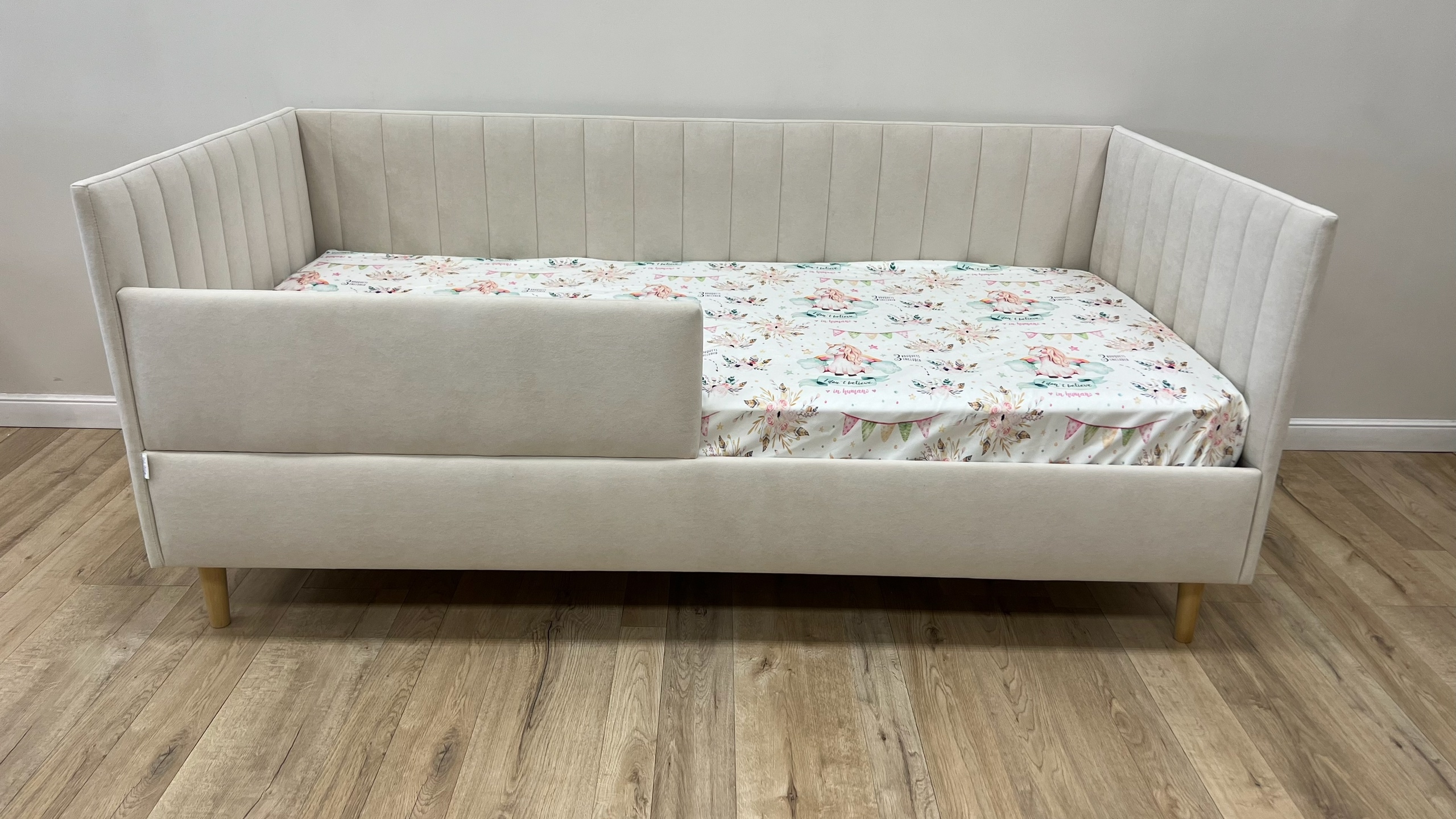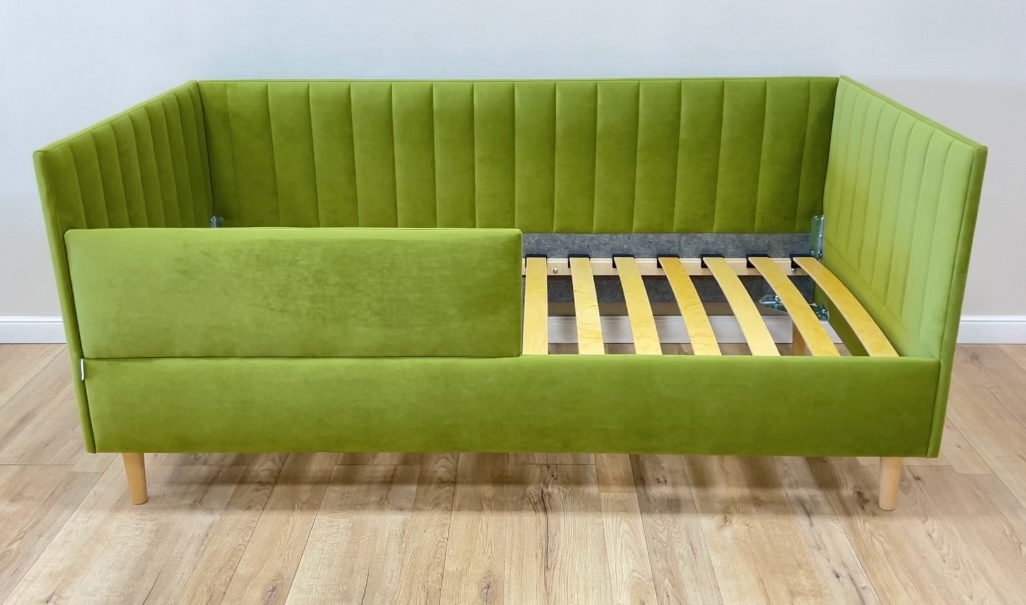 Кровать полностью безопасна для ребенка, так как имеет прочную конструкцию и мягкие подлокотники, которые защитят ребенка от травм.