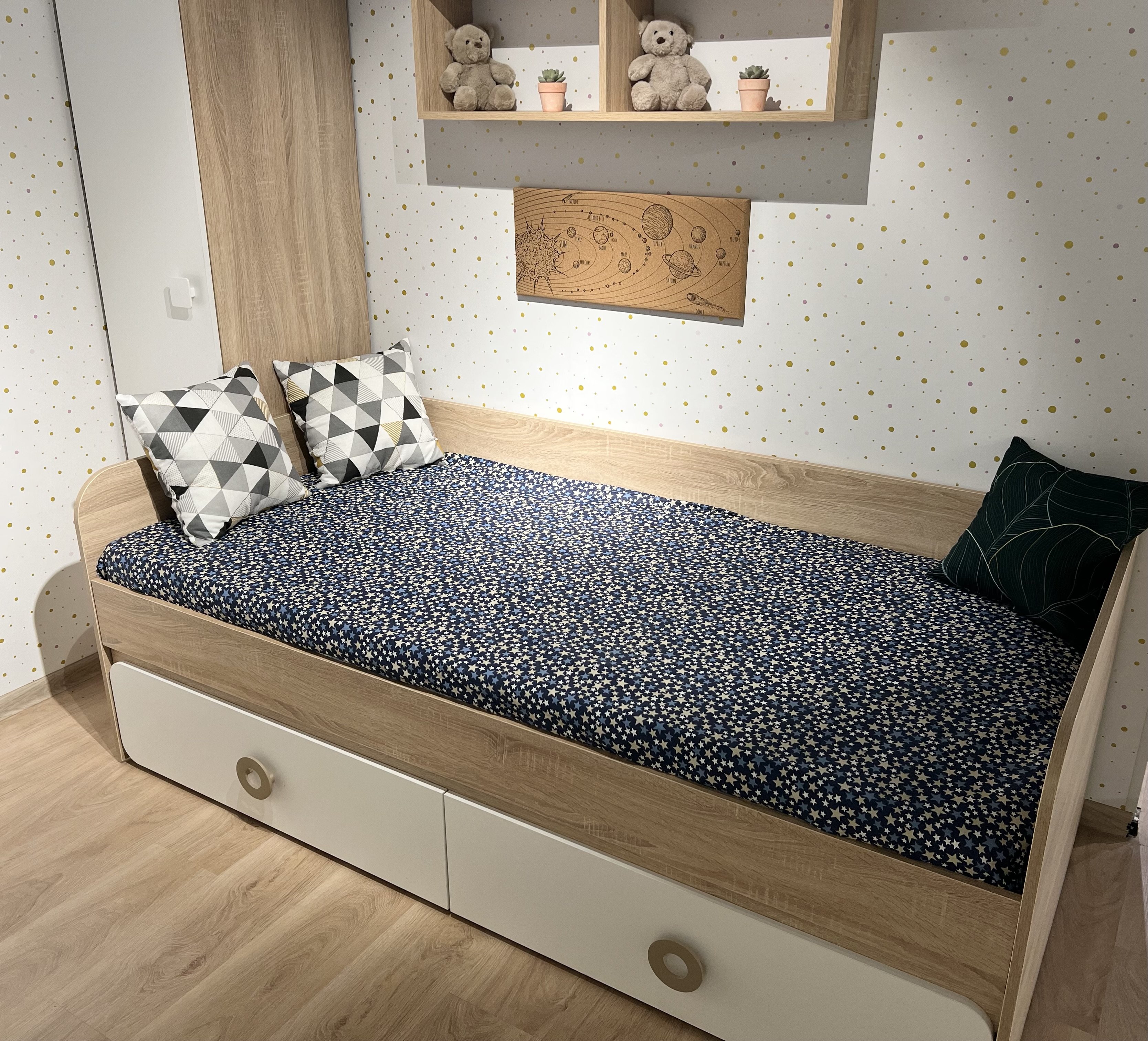 * Основание кровати – прочный настил ЛДСП (НЕ РЕЙКИ!), который позволяет ребенку спать на ровной поверхности, что важно для детской спины.
