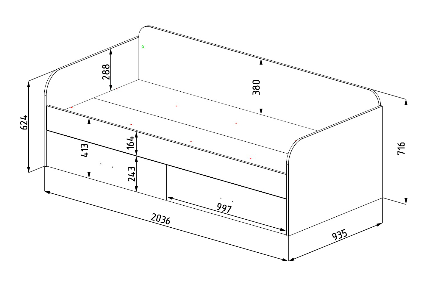 * В кровать встроены два выдвижных ящика на шариковых направляющих полного выдвижения.