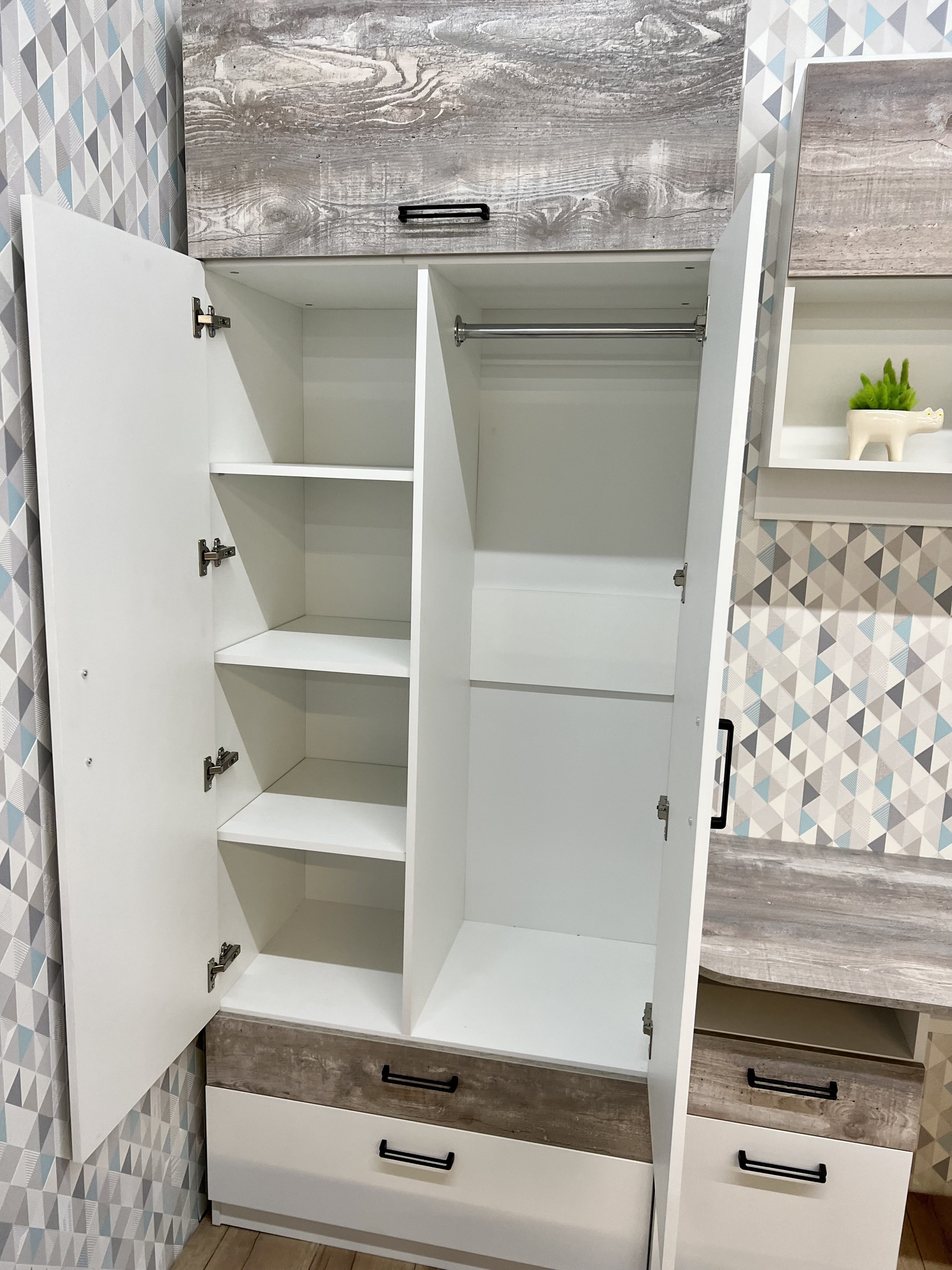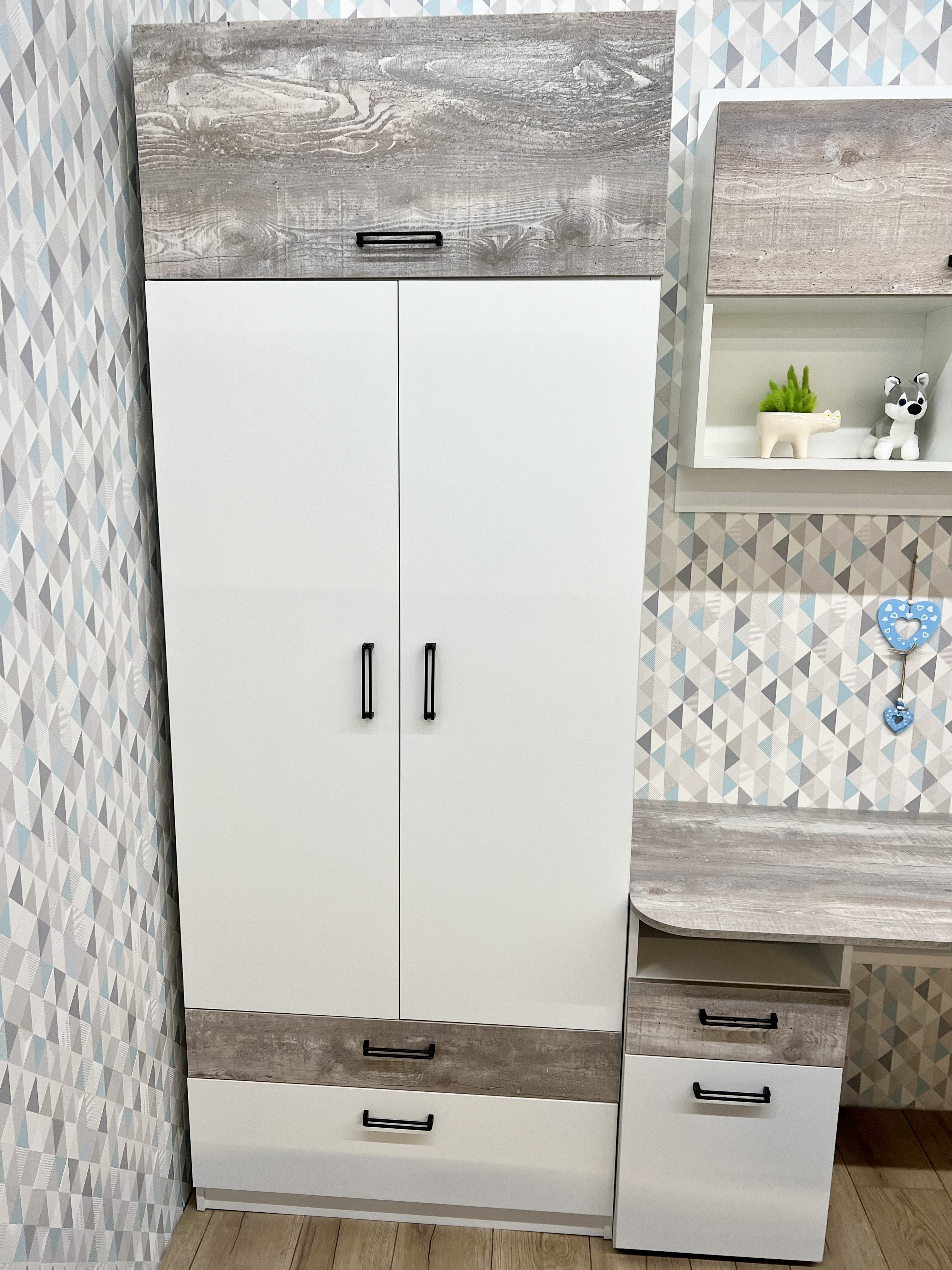 Идеально вписывается в детскую комнату, шкаф очень практичный и вместительный, по своим габаритам отлично подходит и для небольших комнат.