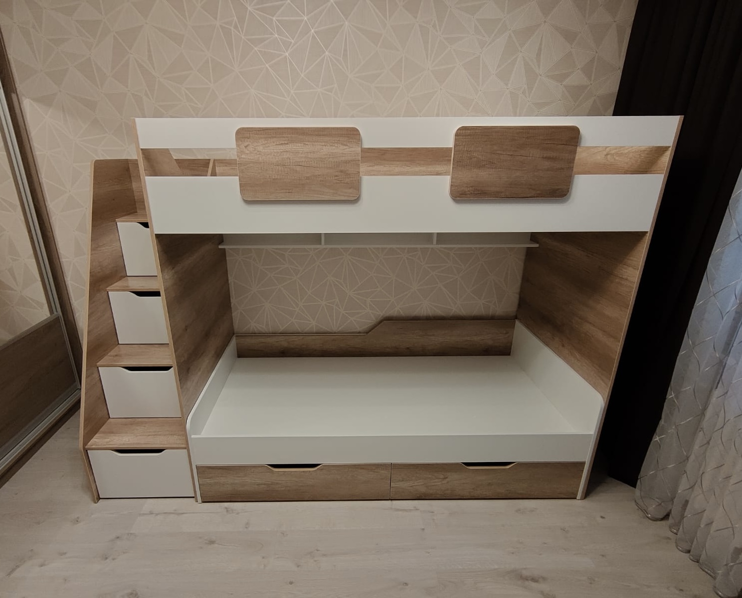 Высокая нагрузка на спальные места. Высокий, безопасный борт. Прочные ящики! |
