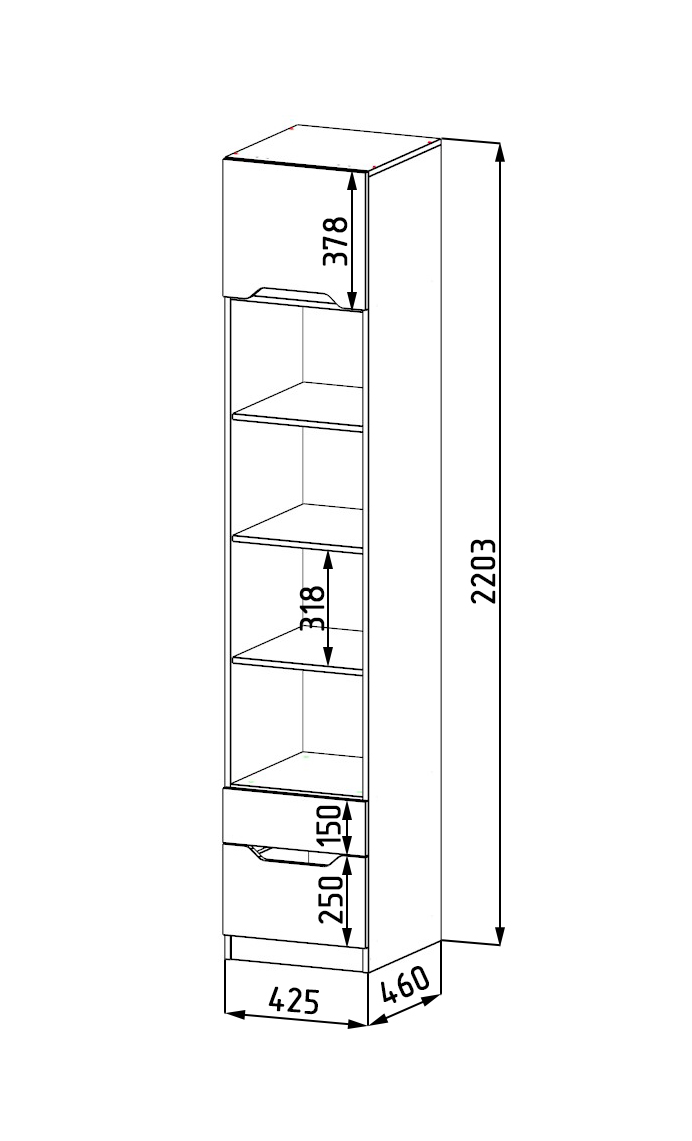 Габариты: ширина 425 х высота 2203 х глубина 479 мм