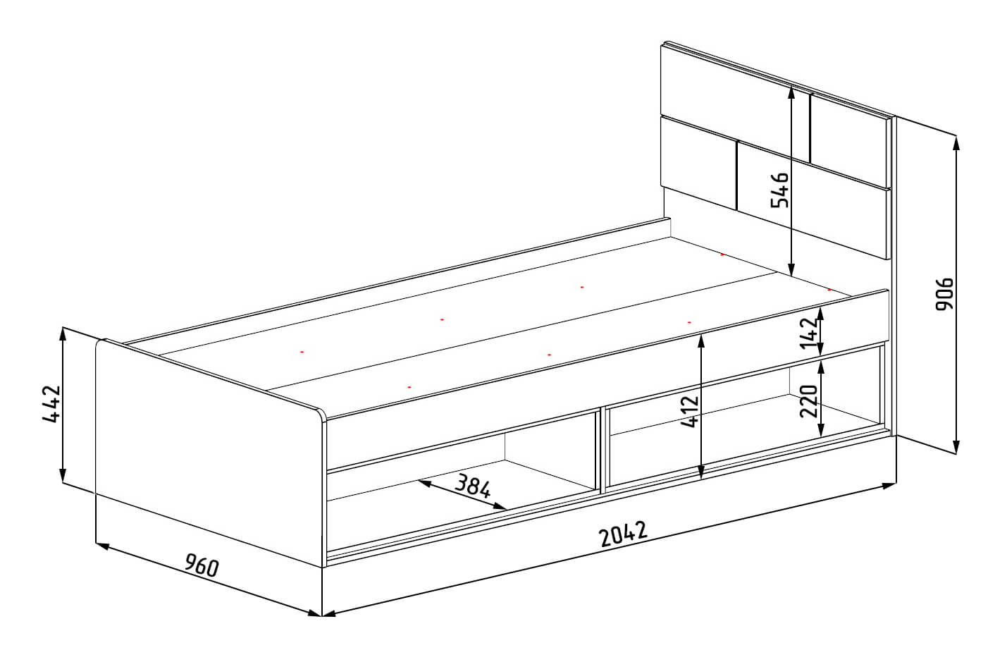 Габариты: ширина 2042 х высота 906 х глубина 960 мм
