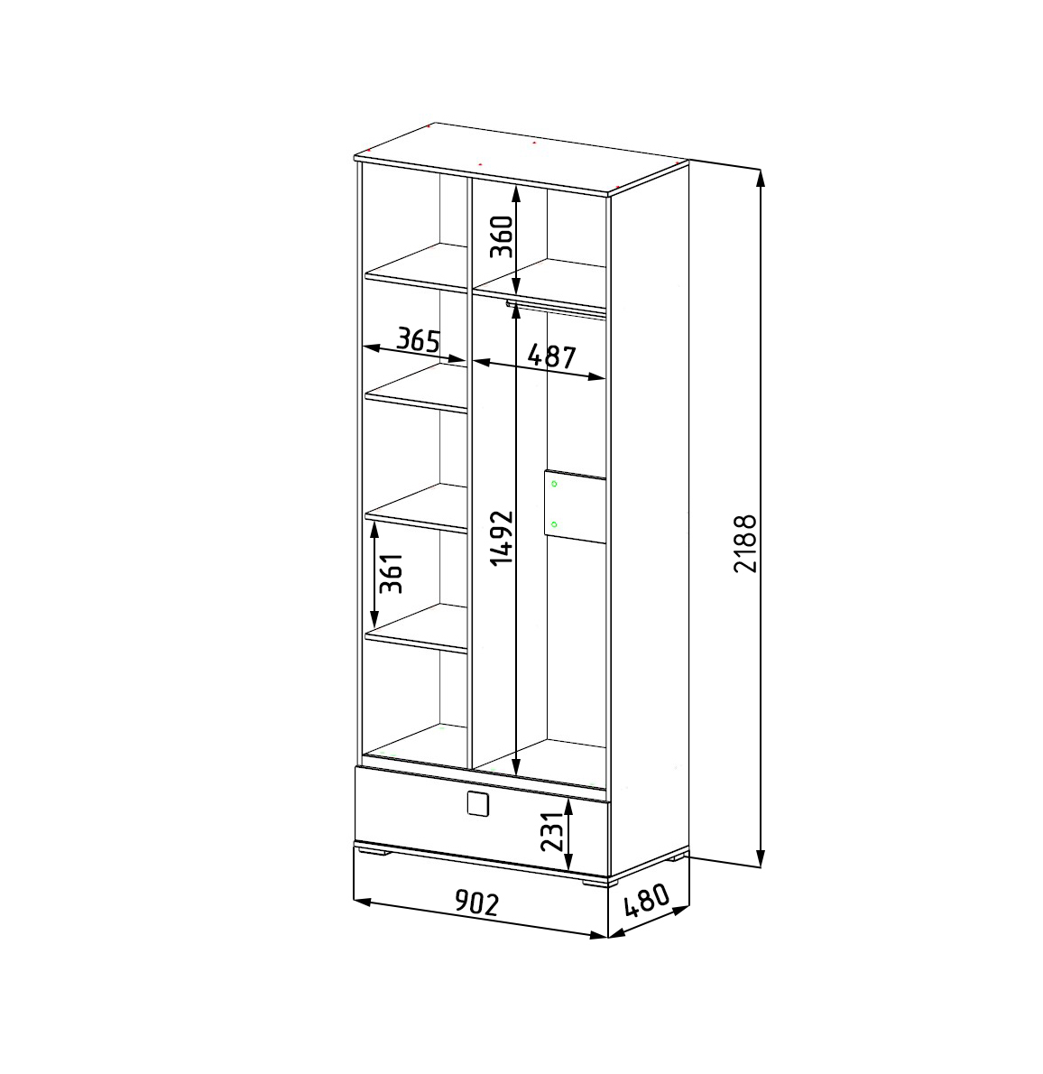 Габариты: ширина 902 х высота 2188 х глубина 480 мм