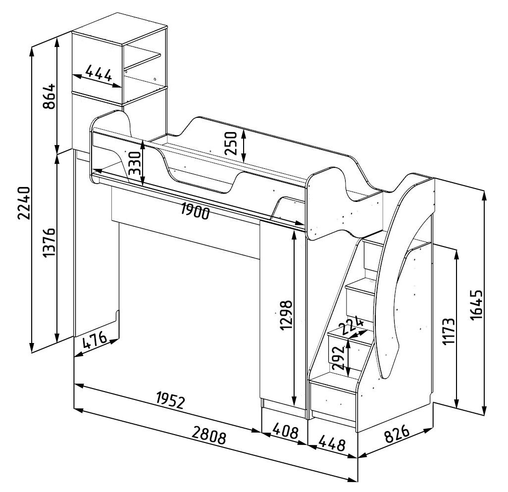 Габариты кровати: в2240 х г826 х ш2808 мм