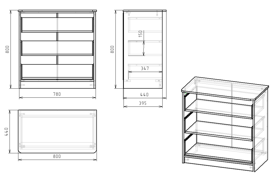 Габариты комода: ширина 800 х высота 800 х глубина 440