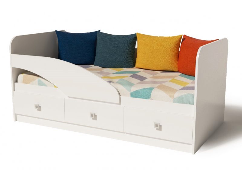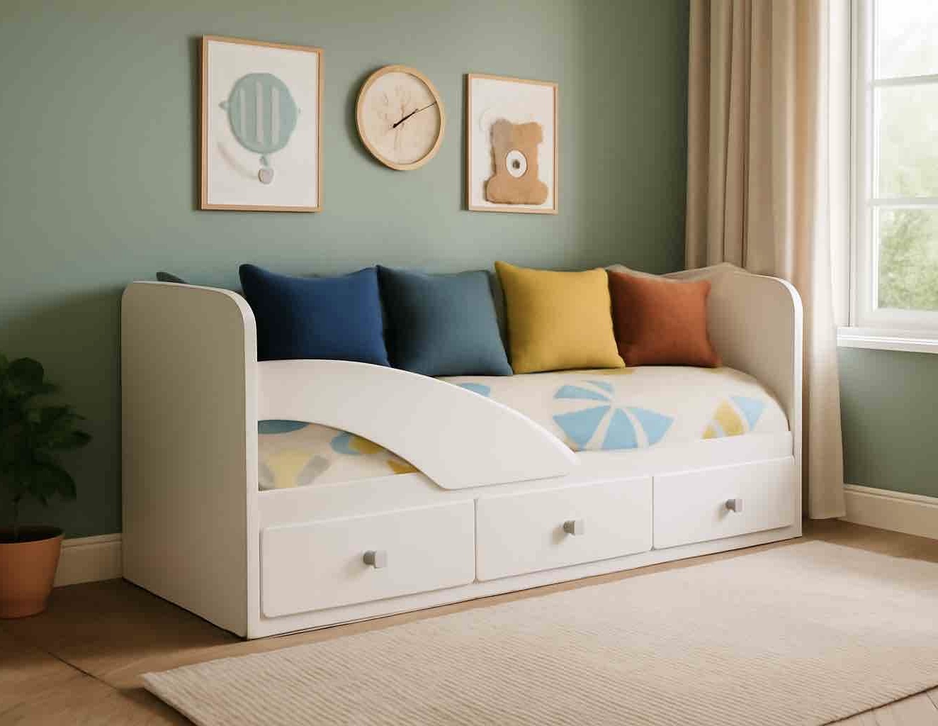 В кровать встроены три выдвижных ящика для белья и игрушек.