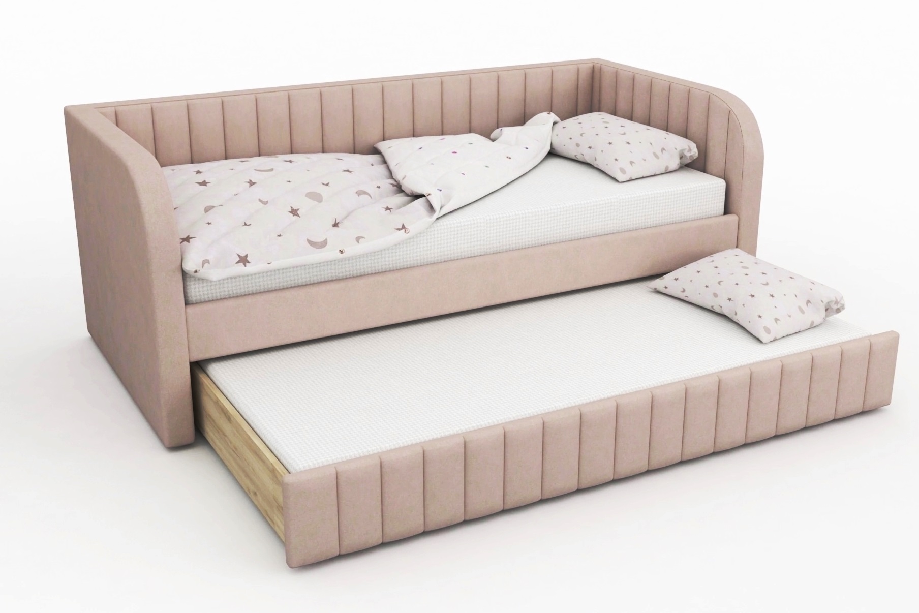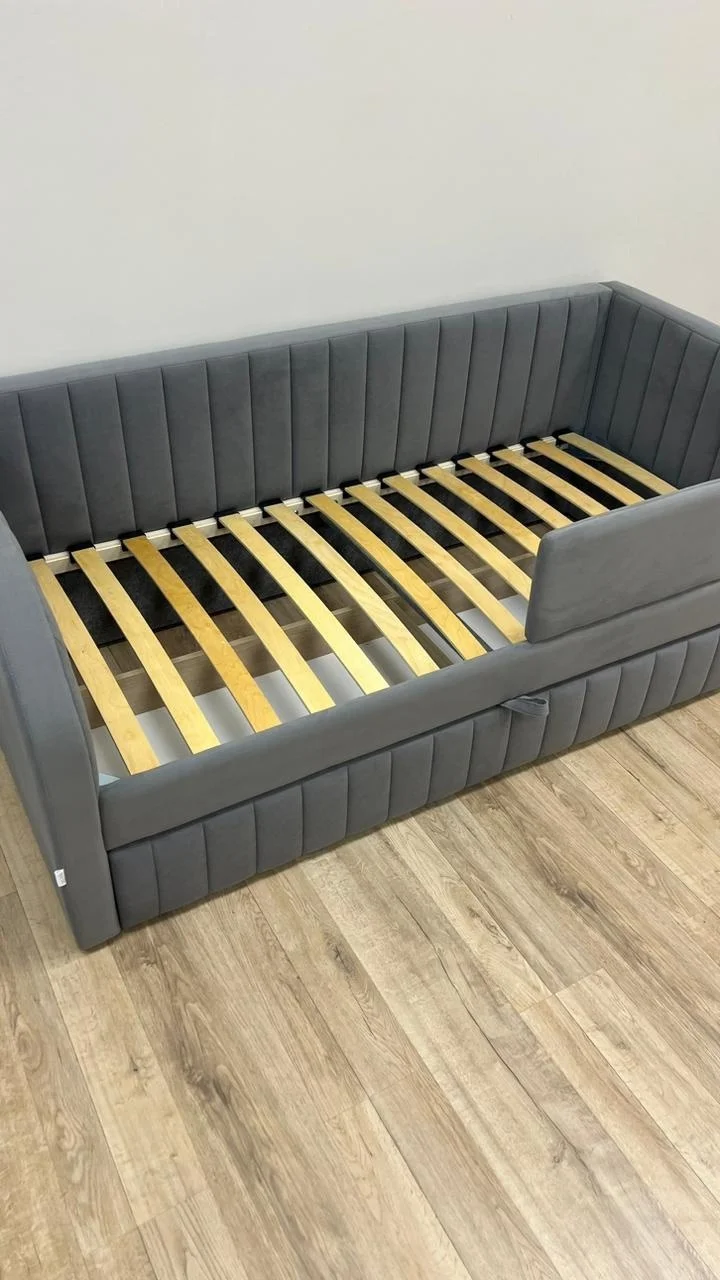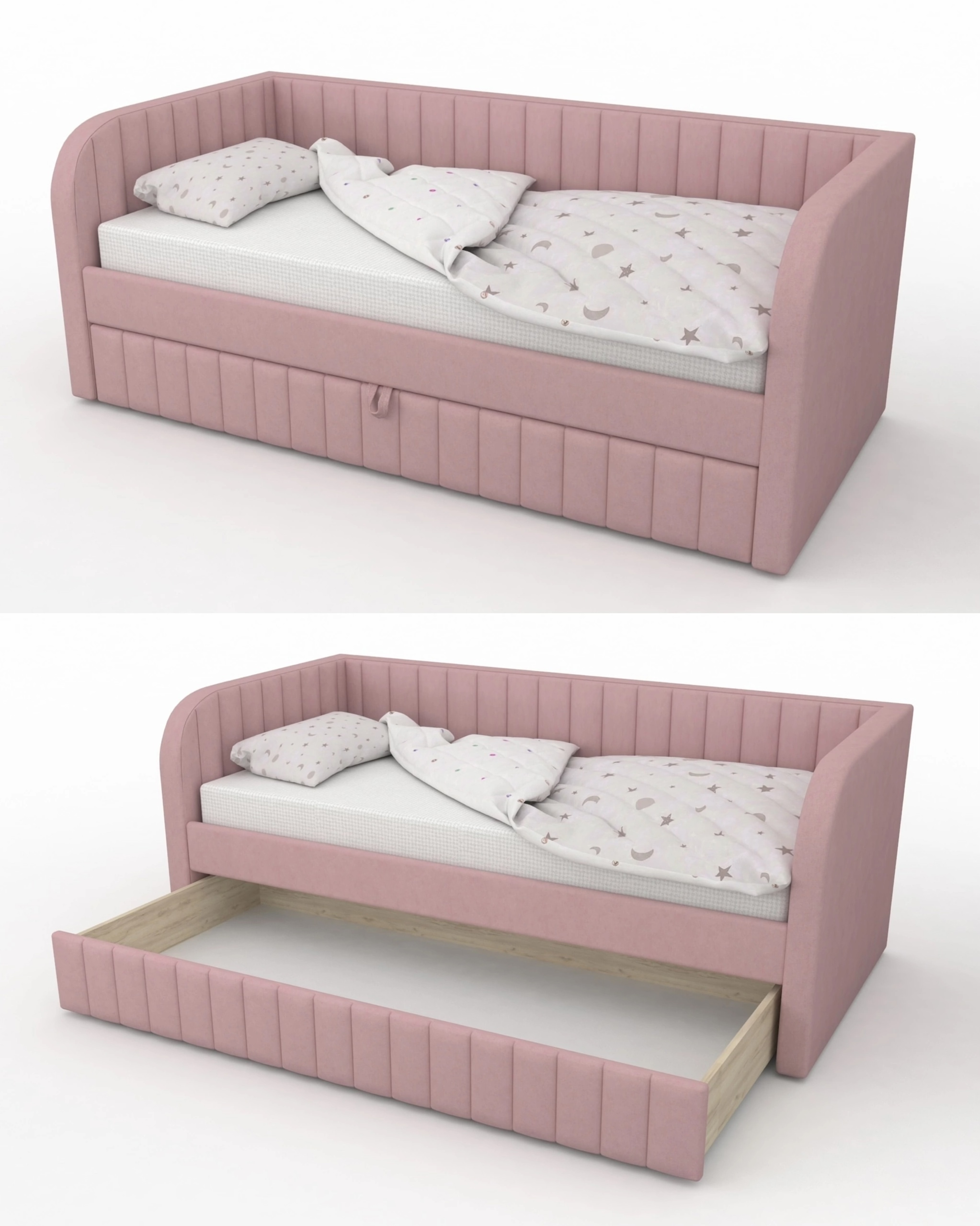 Кровать оснащена большим ящиком для хранения постельного белья или выкатным спальным местом на ваш выбор.