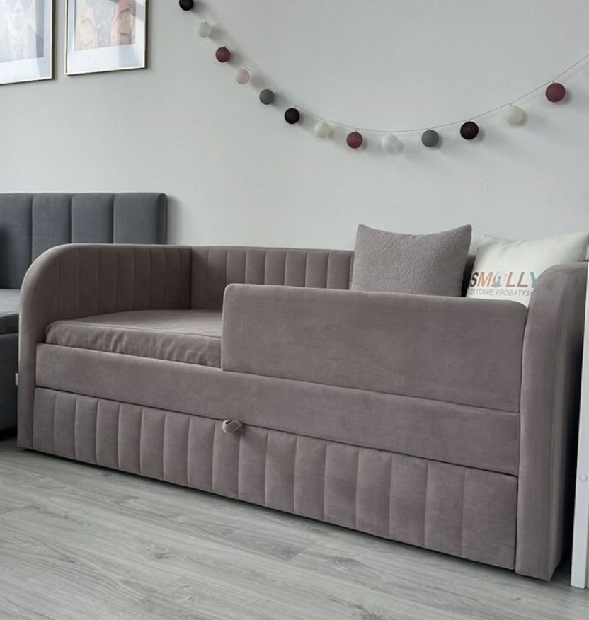 Кровать полностью безопасна для ребенка, так как имеет прочную конструкцию и мягкие подлокотники, которые защитят ребенка от травм.