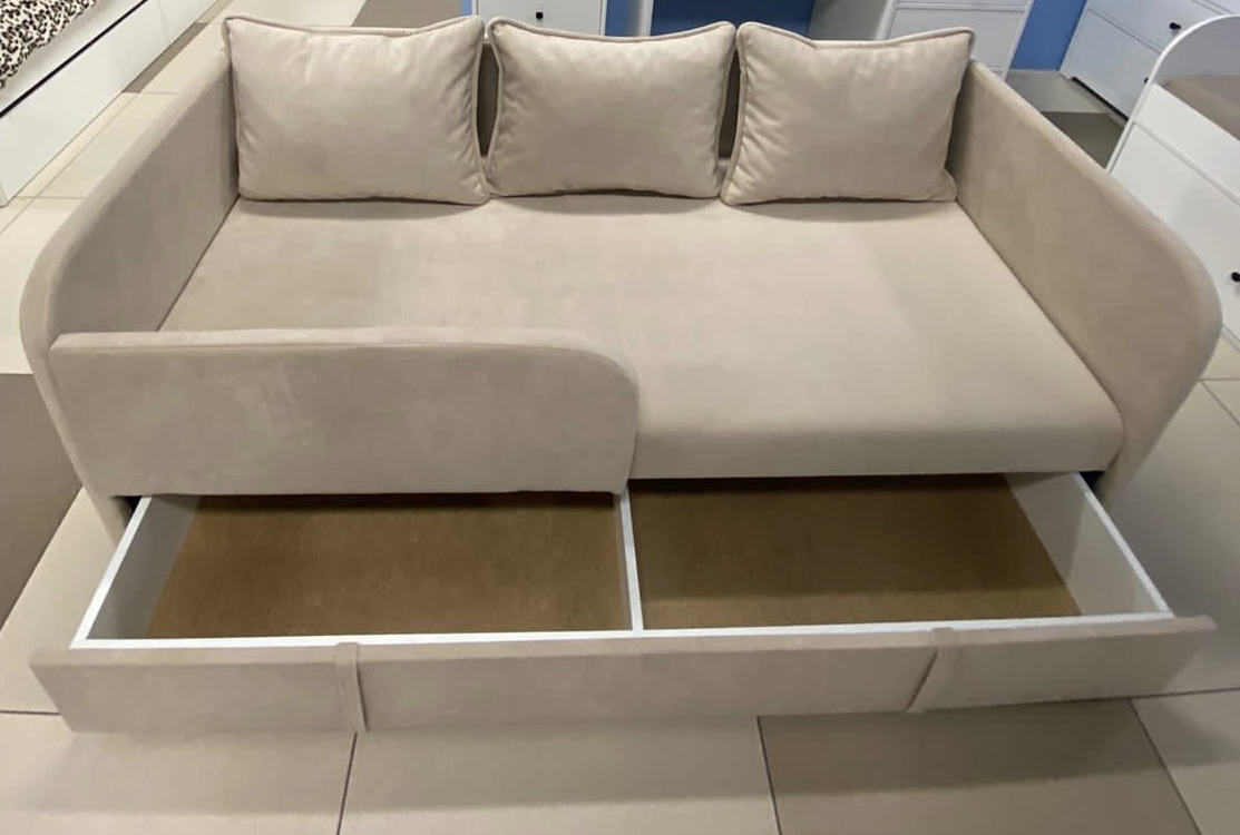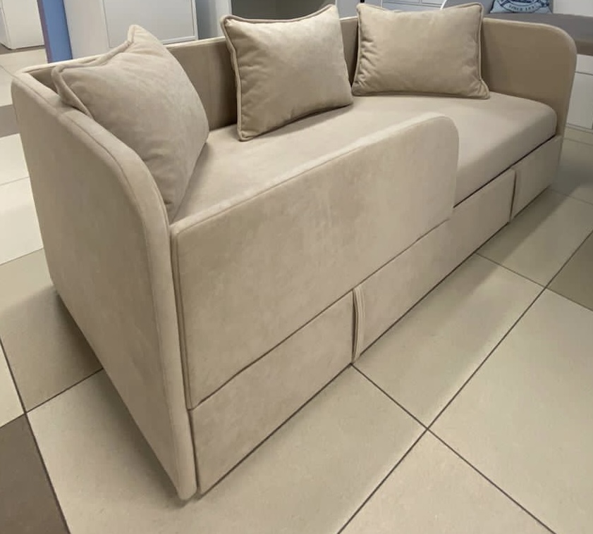 В стоимость дивана входят: матрас, подушки (3 штуки), защитный бортик, выдвижной ящик.