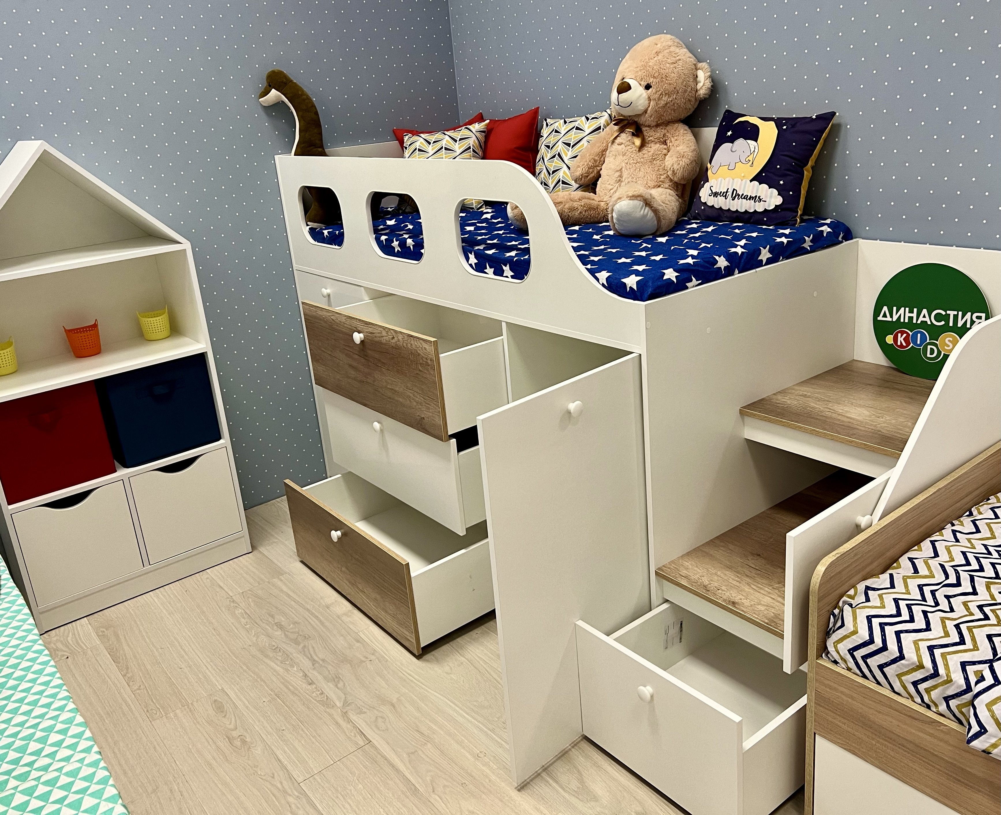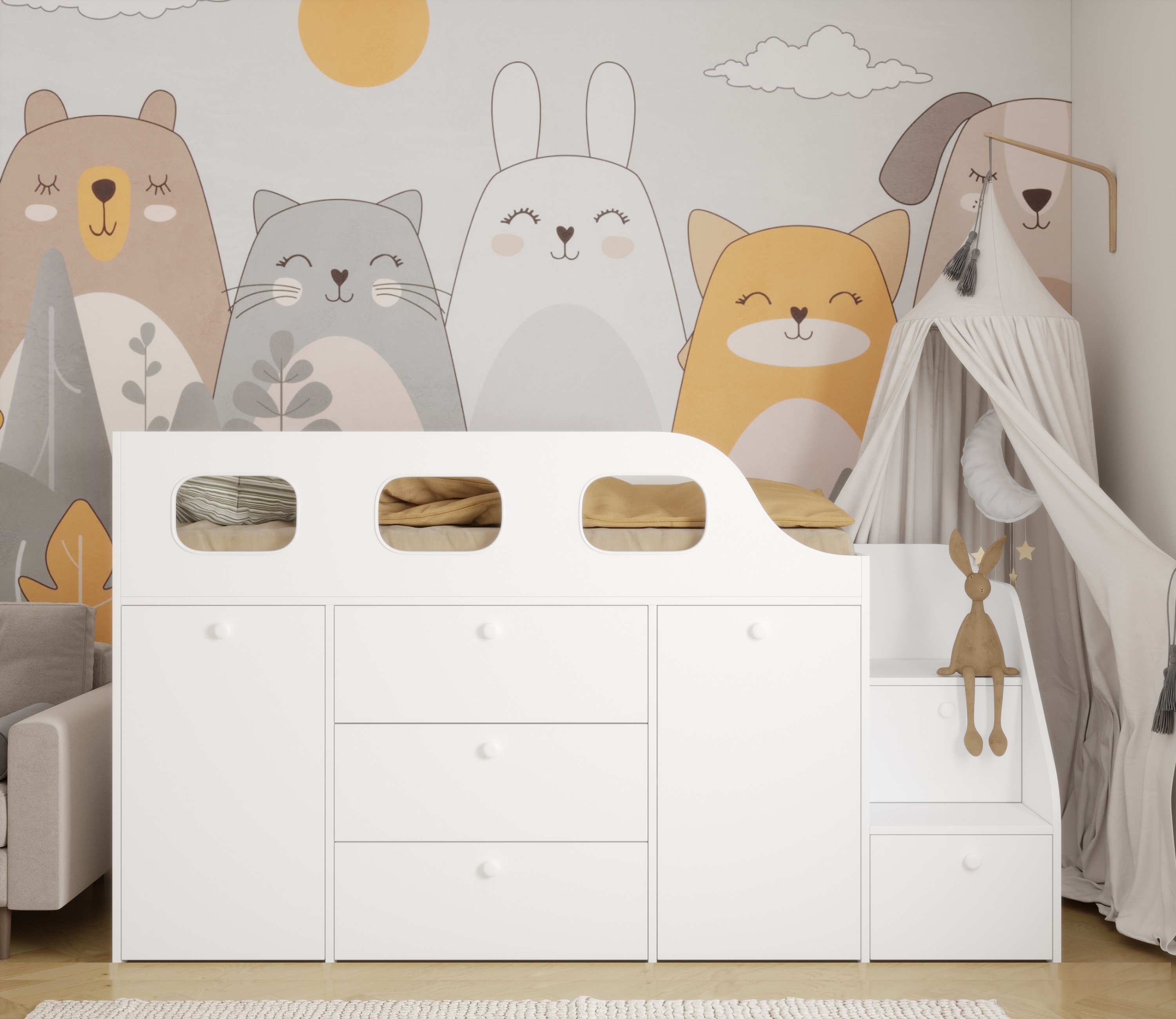Функциональная кровать – прекрасный вариант обустройства детской комнаты.Белый цвет отлично подходит как мальчикам, так и девочкам. Визуально не перегружает пространство, подходит под любой цвет стен и интерьер.