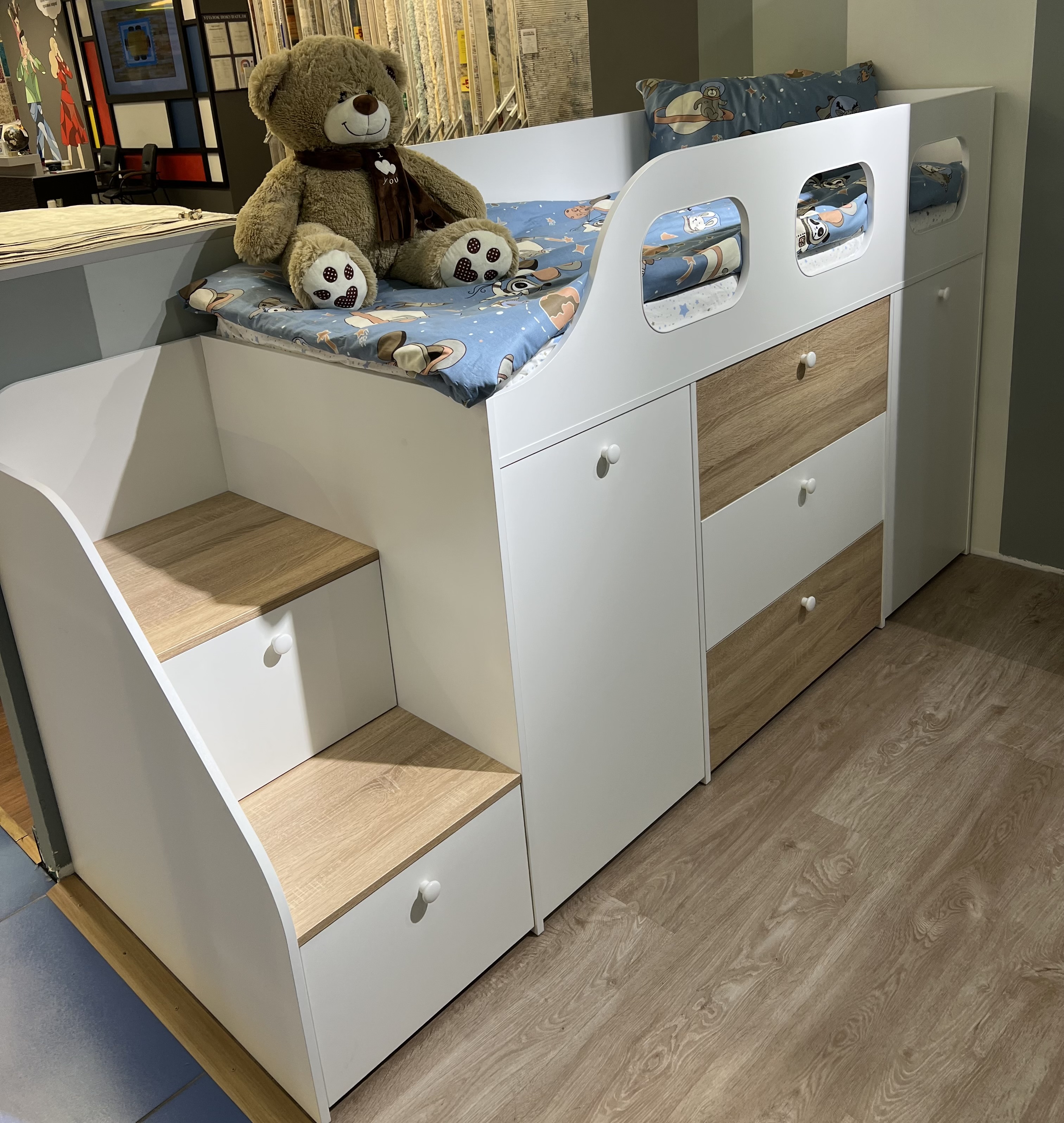* Основание кровати – прочный настил ЛДСП (НЕ РЕЙКИ!), который позволяет ребенку спать на ровной поверхности, что важно для детской спины.