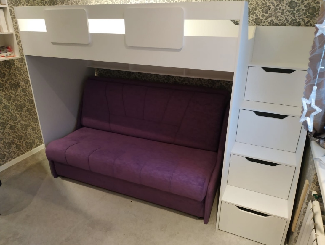 Габариты кровати: ширина с учетом лестницы 2478, глубина 968, высота 1780 мм