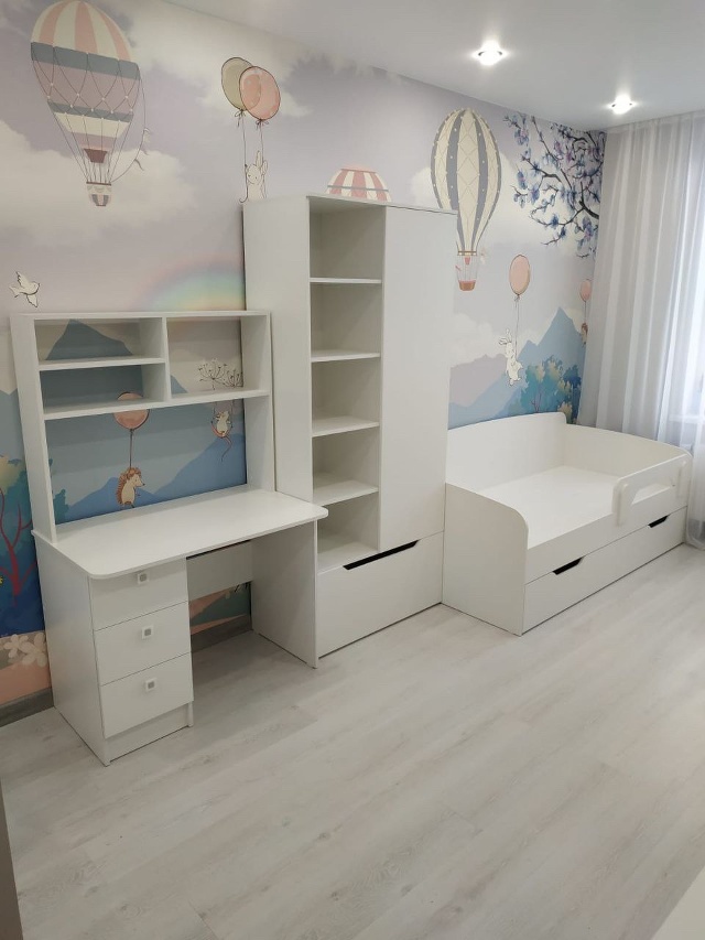 <comment>Здравствуйте, делюсь с вами фото нашей детской. Спасибо, отличная кровать, стол и комод тоже удачно вписались с интерьер. </comment>