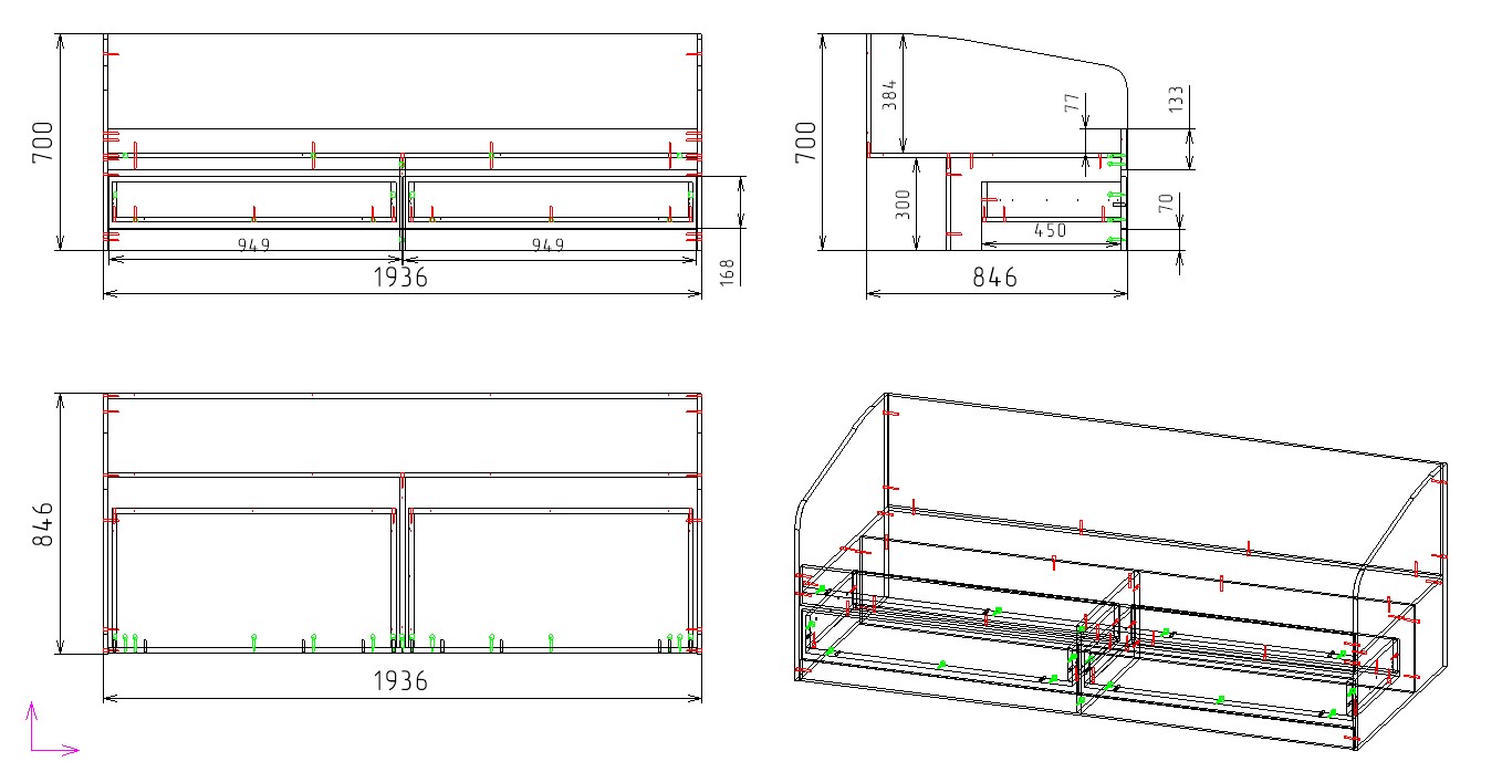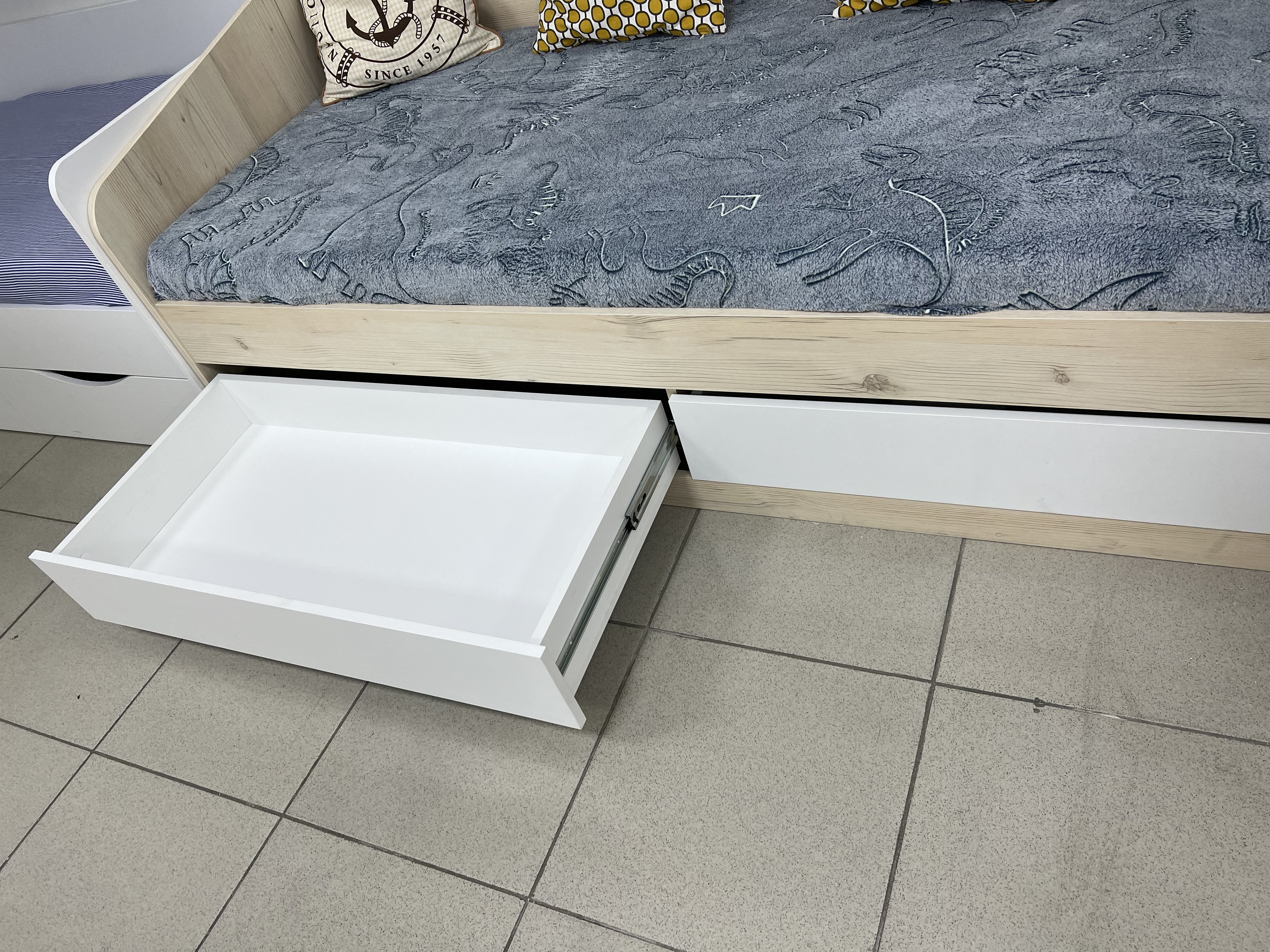 В кровать встроены два выдвижных ящика на шариковых направляющих.