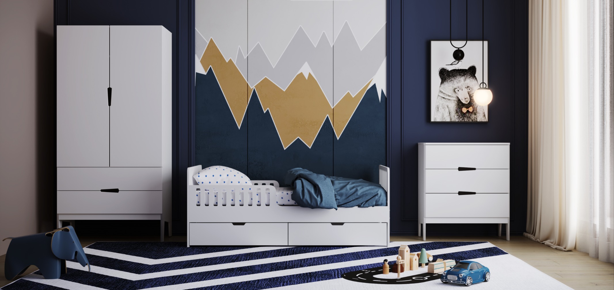 Для детей помладше предусмотрены защитные бортики, чтобы малыш не упал с кроватки.