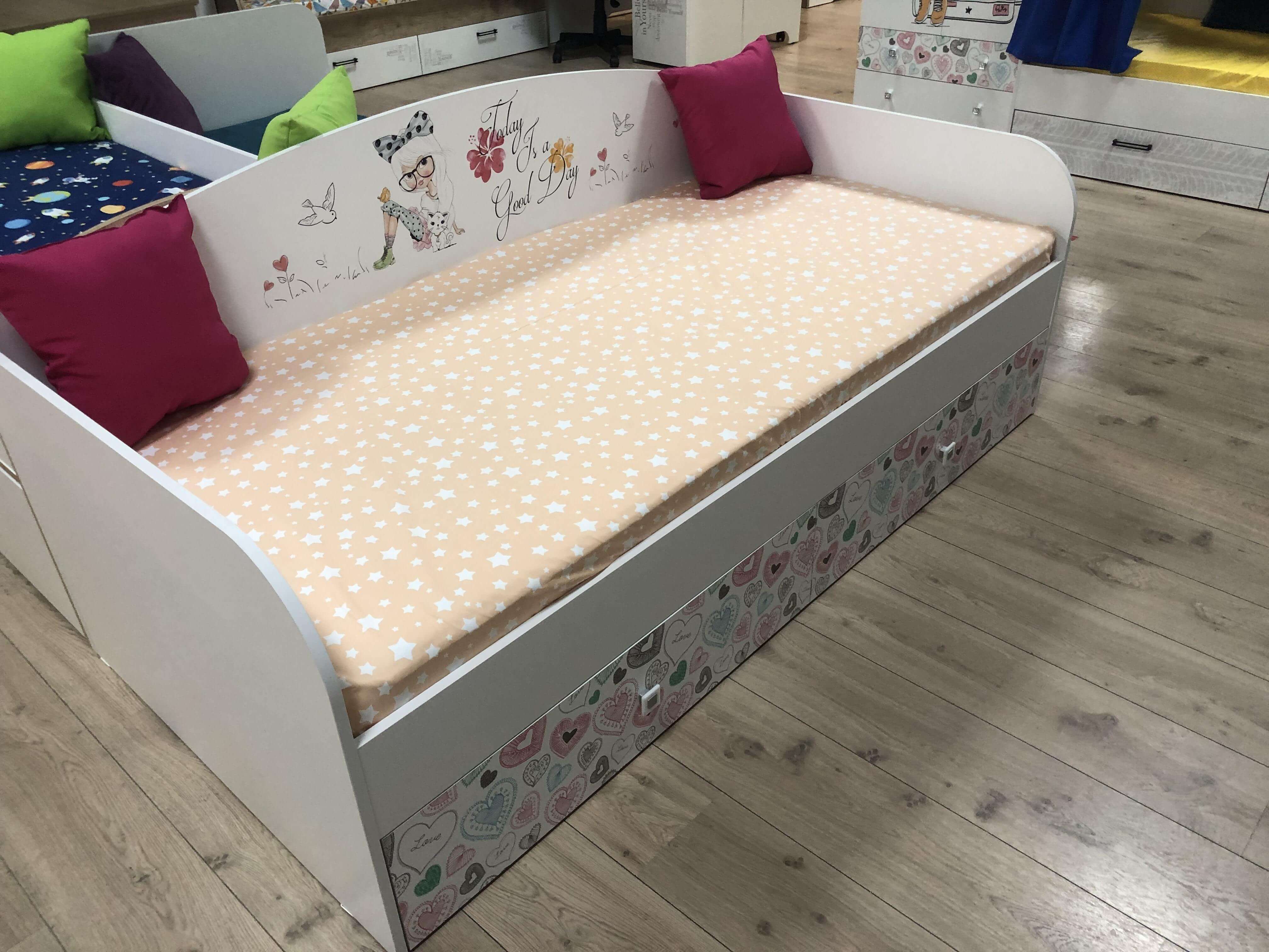 Мебель выполнена из сертифицированного, качественного, экологически чистого ЛДСП в белом цвете с дизайнерским принтом