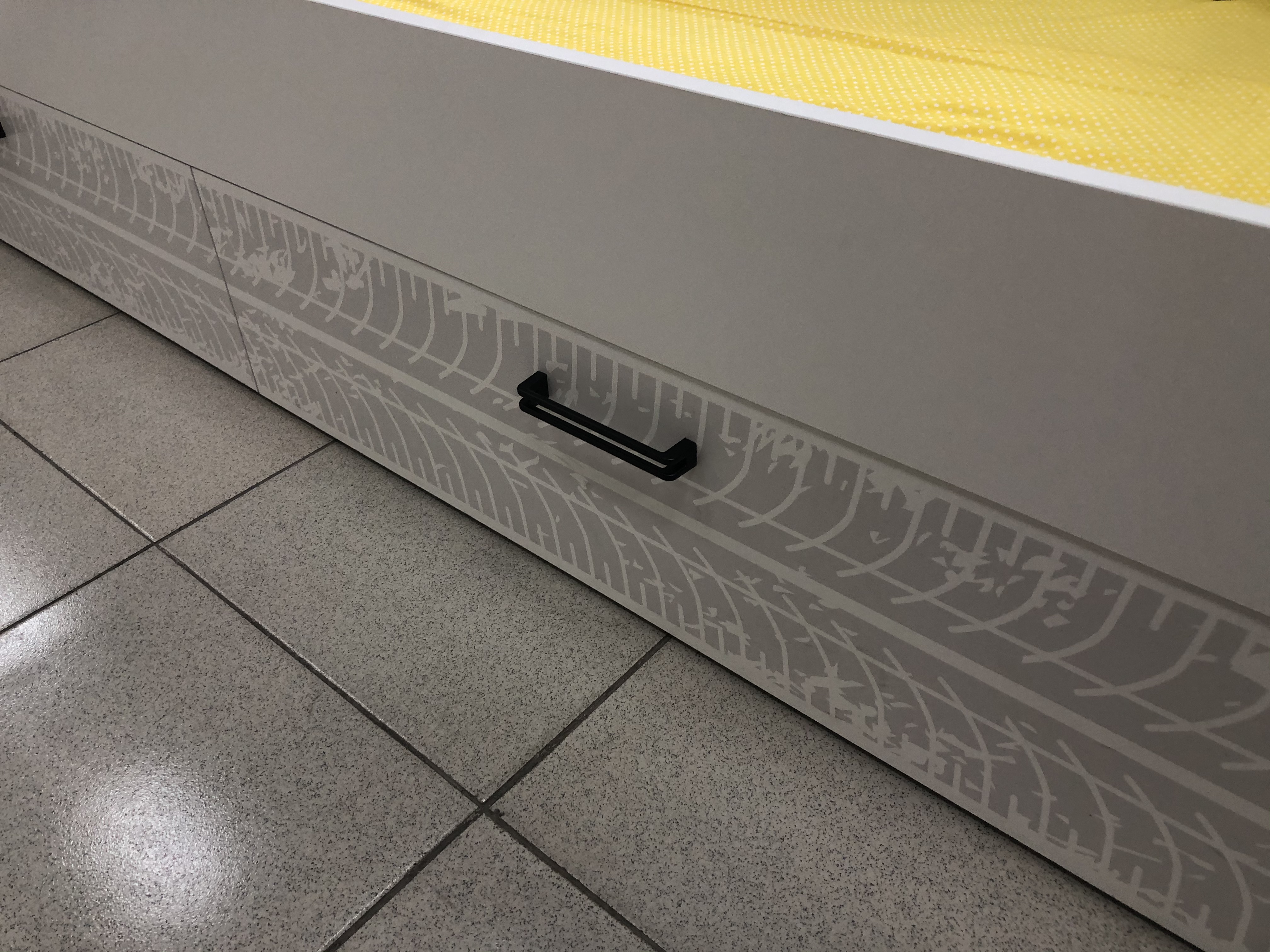 ЛДСП Е0,5. Толщина 16 мм. Цвет белый+дизайнерский принт. Лицевые детали обработаны немецкой кромкой Rehau ПВХ 1 мм. |