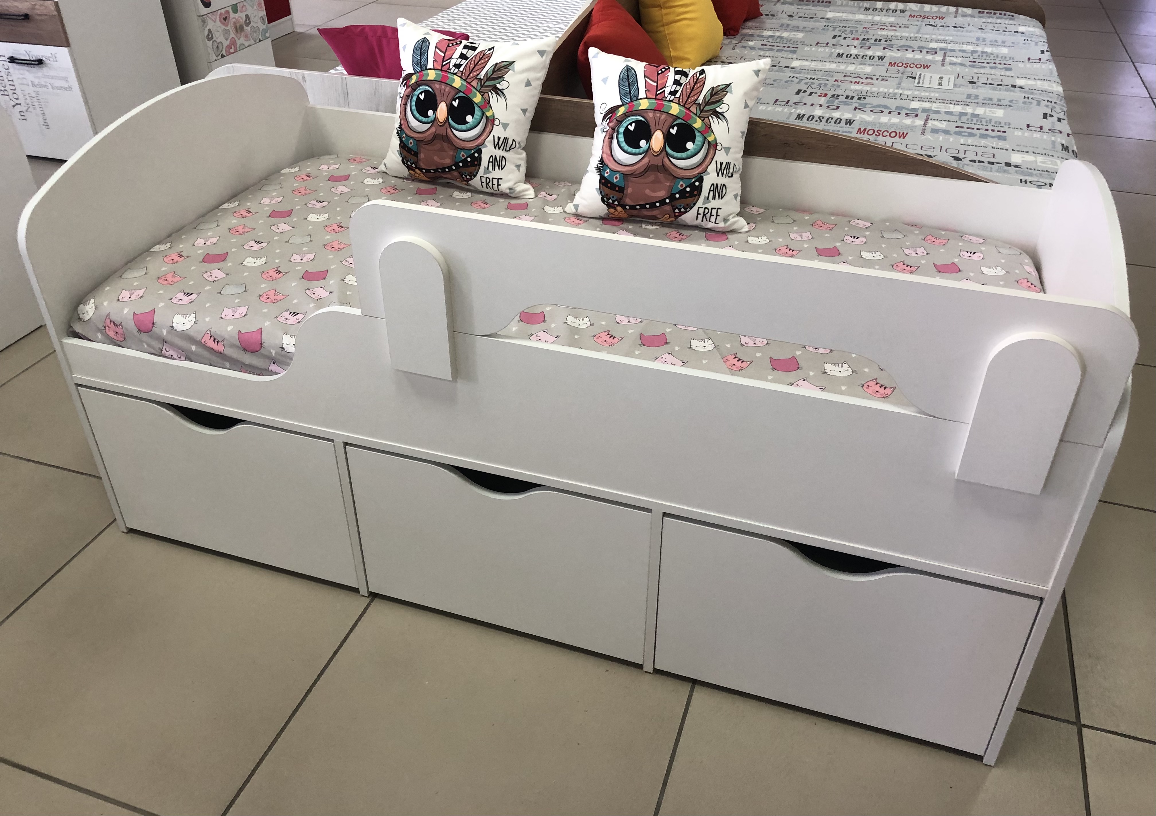 * Для дополнительной усиленной защиты для самых маленьких деток можно приобрести съемный бортик-ограничитель (устанавливается наверх основного бортика кровати).