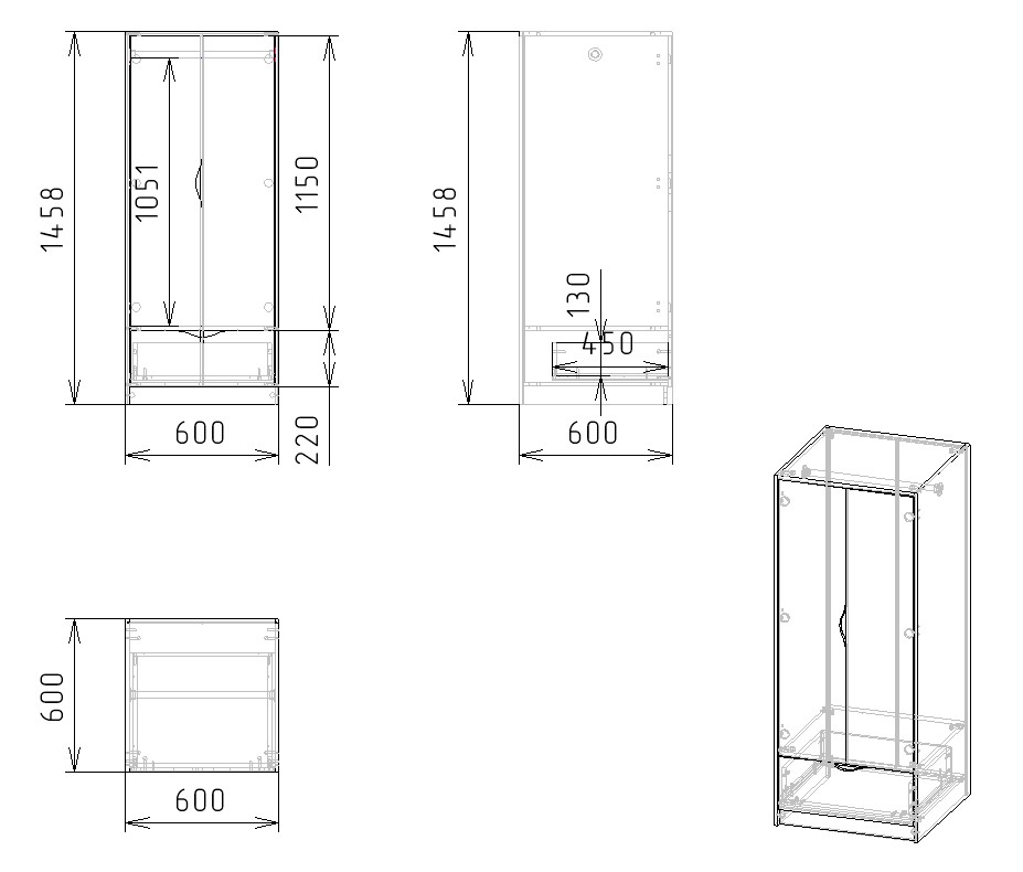 Габариты шкафа: ширина 600, высота 1458, глубина 600 мм