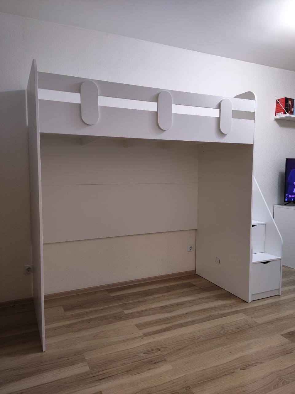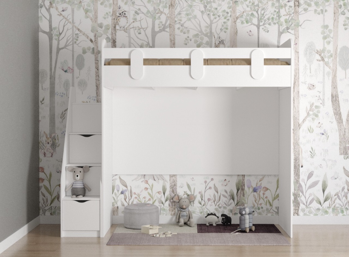 Основание кровати – прочный настил ЛДСП, который позволяет ребенку спать на ровной поверхности, что важно для детской спины.