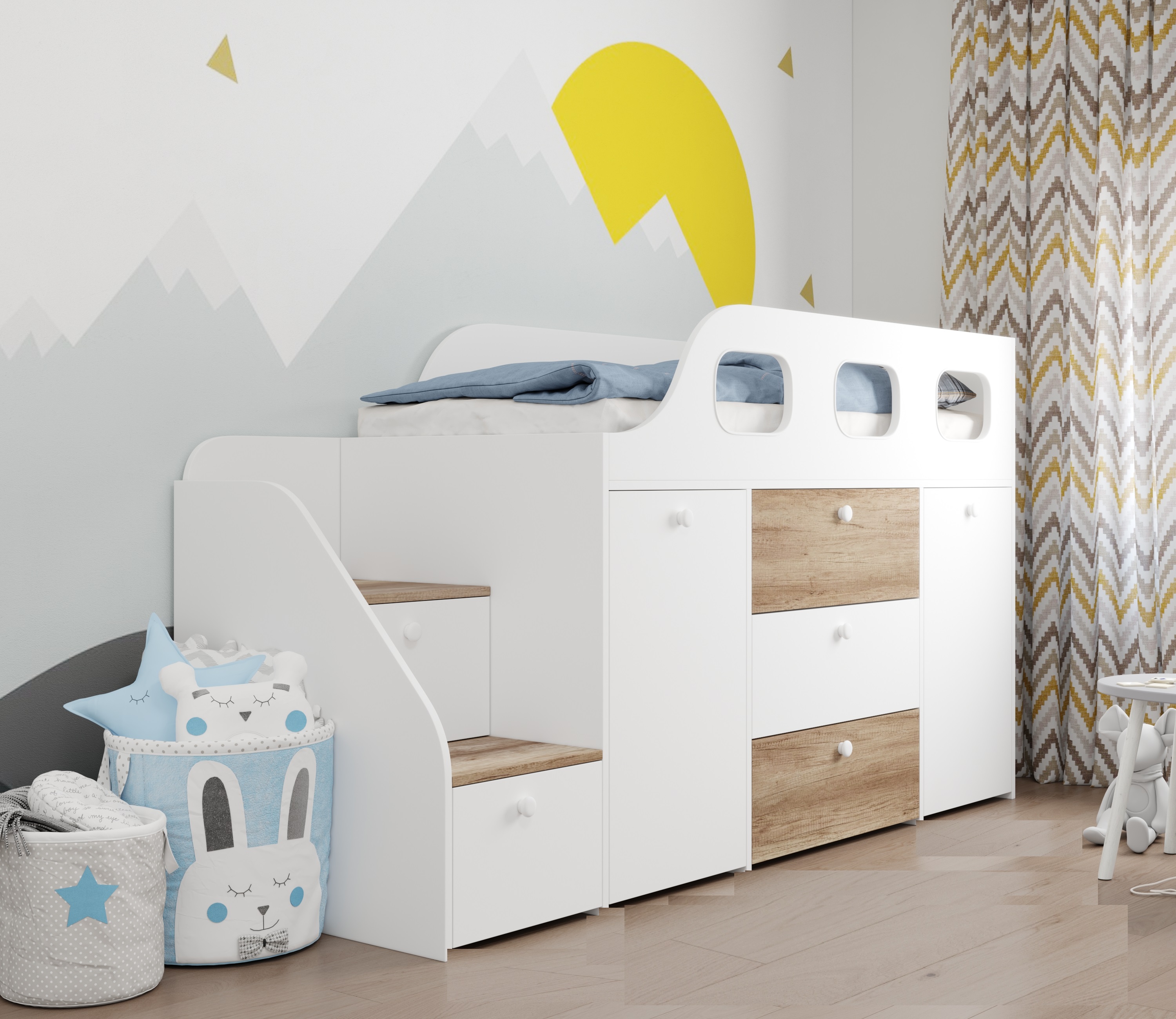 * Основание кровати – прочный настил ЛДСП (НЕ РЕЙКИ!), который позволяет ребенку спать на ровной поверхности, что важно для детской спины.