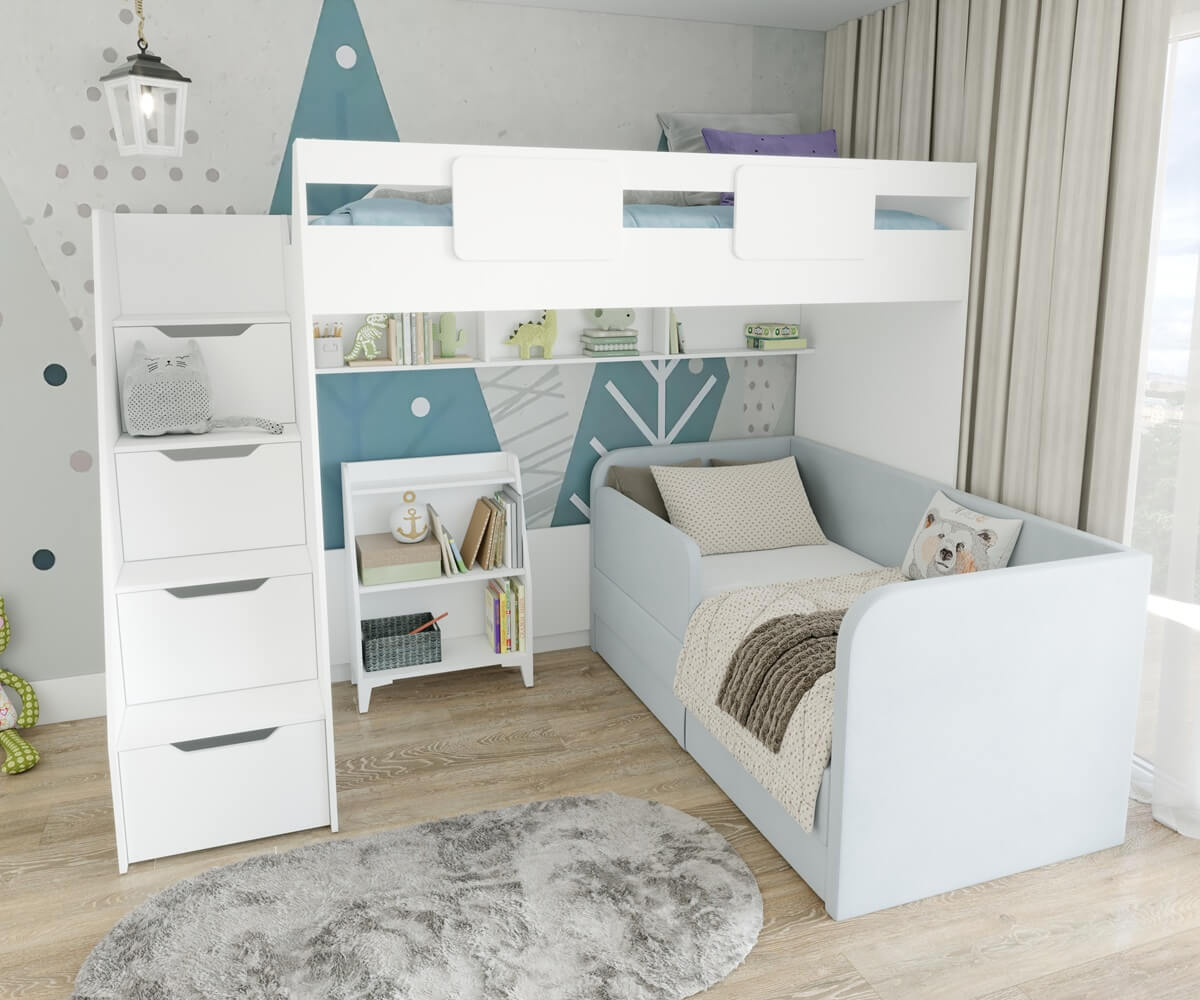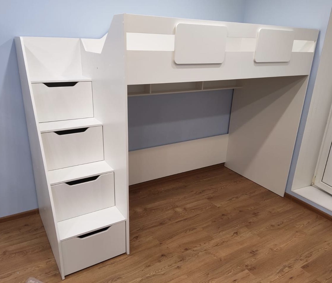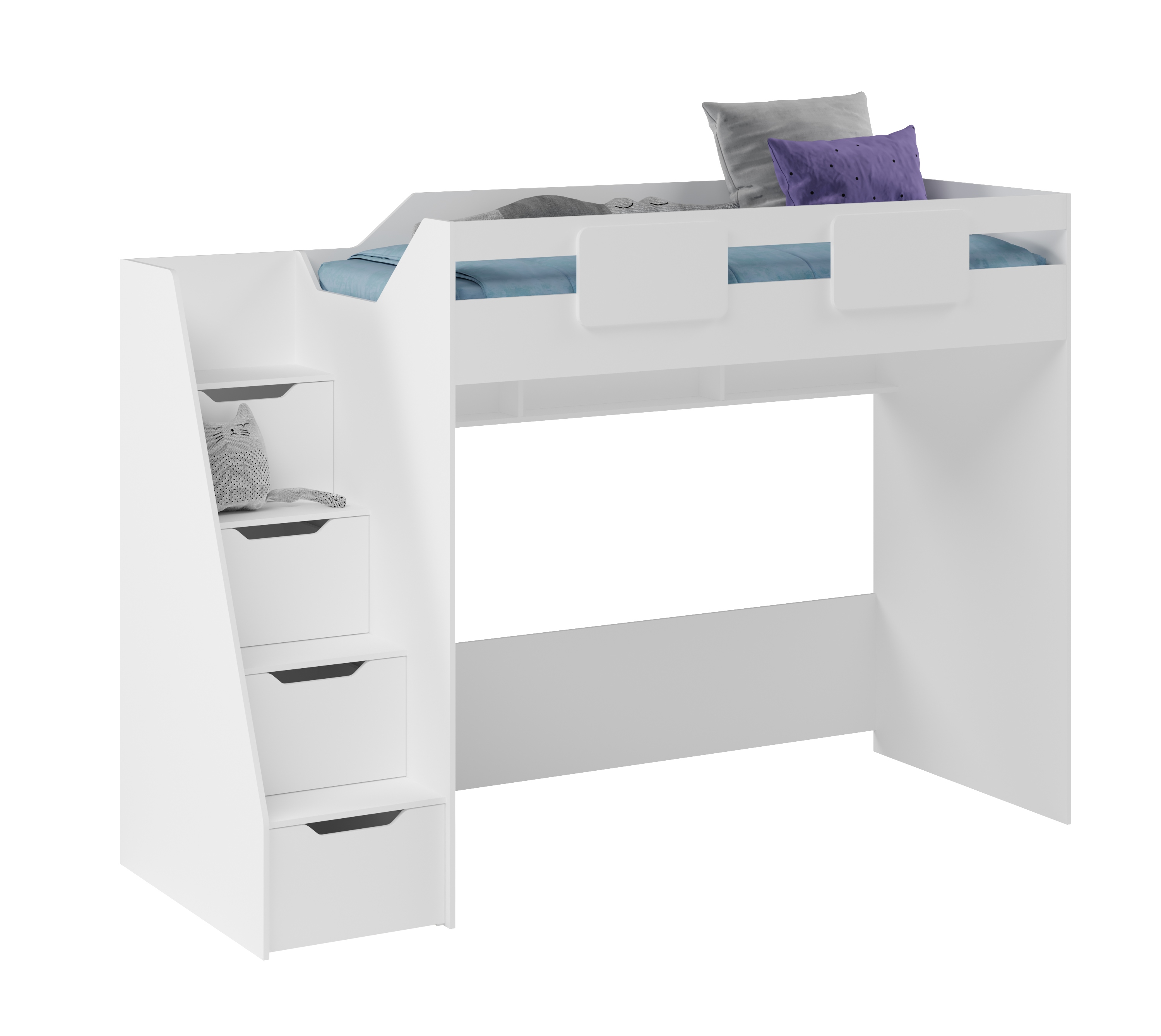 Кровать-чердак коллекции Мозаика-2 (цвет белый) 200х90 от Династия Kids