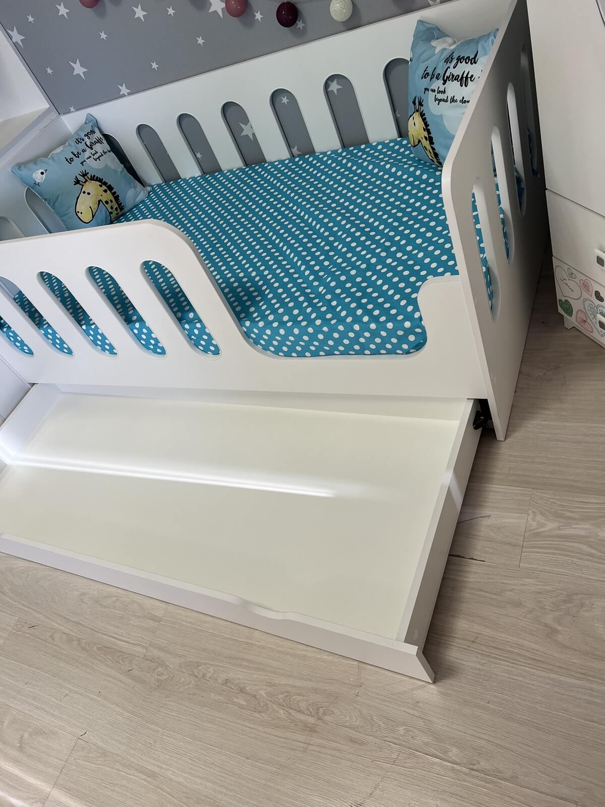 * Основание кровати – прочный настил ЛДСП (НЕ РЕЙКИ!), который позволяет ребенку спать на ровной поверхности, что важно для детской спины.